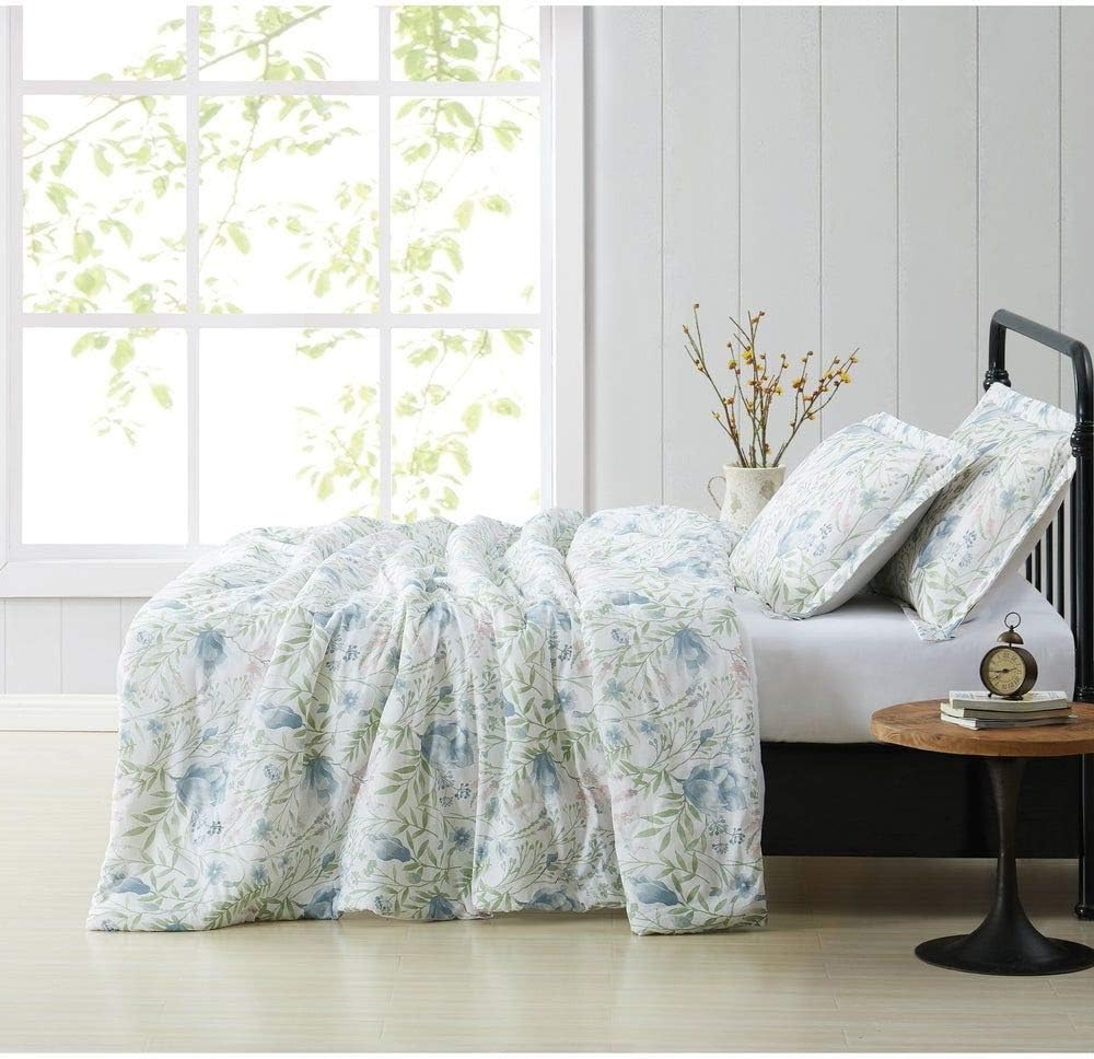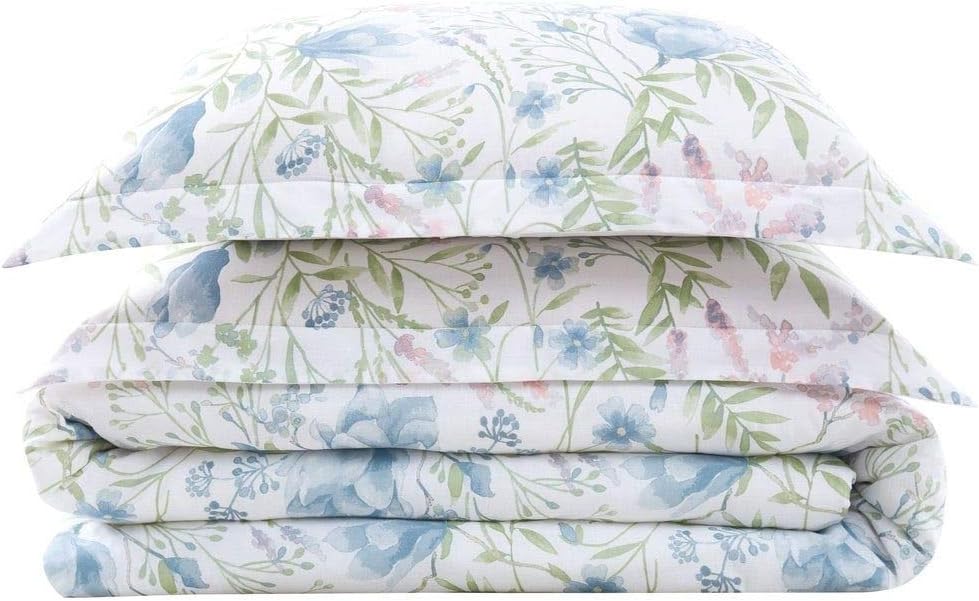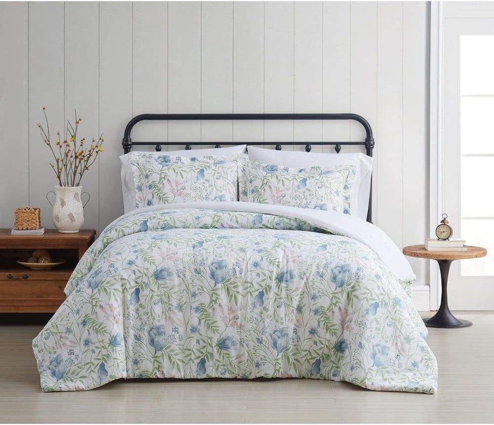Enhance your bedroom with this 2-piece farmhouse comforter set that combines vintage charm with modern comfort. Its antique design and floral pattern in soft blue, green, and white hues create a welcoming and stylish atmosphere perfect for any home.
