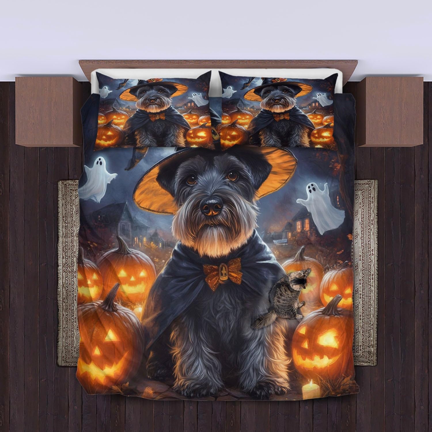 Designed with a playful Standard Schnauzer dog motif, this bedding set adds a personal touch and brings a sense of humor and warmth to your childâs room. Itâs not just for decorationâit's functional, durable, and built to last. The set includes one duvet cover and two matching pillowcases, available in twin, full, queen, or king sizes, so you can find the perfect fit for every bed.
