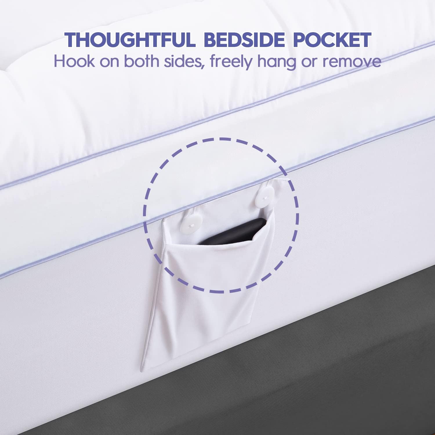 queen memory foam mattress topper, gel memory foam pad, down alternative pillowtop, bedside pocket storage, cooling mattress pad