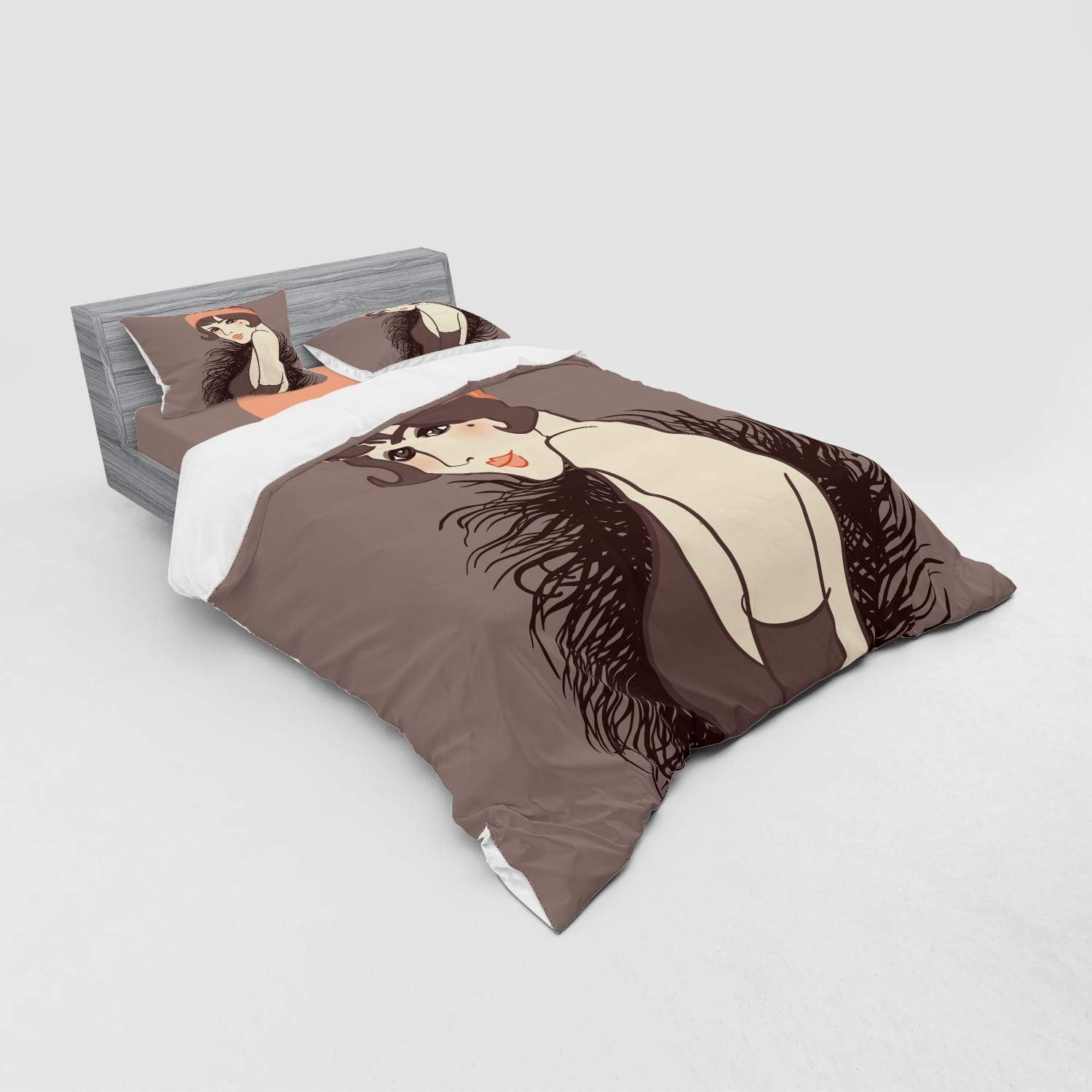 Transform your bedroom into a retro-inspired sanctuary with the Ambesonne Pin Up Girl Duvet Cover Set. This set showcases a hand-drawn portrait of a pale skin lady with a delicate mole on her cheek, adding a unique vintage charm that captures the essence of classic beauty. The artwork is beautifully preserved through high-quality digital printing, ensuring every detail remains vivid and striking for years to come.