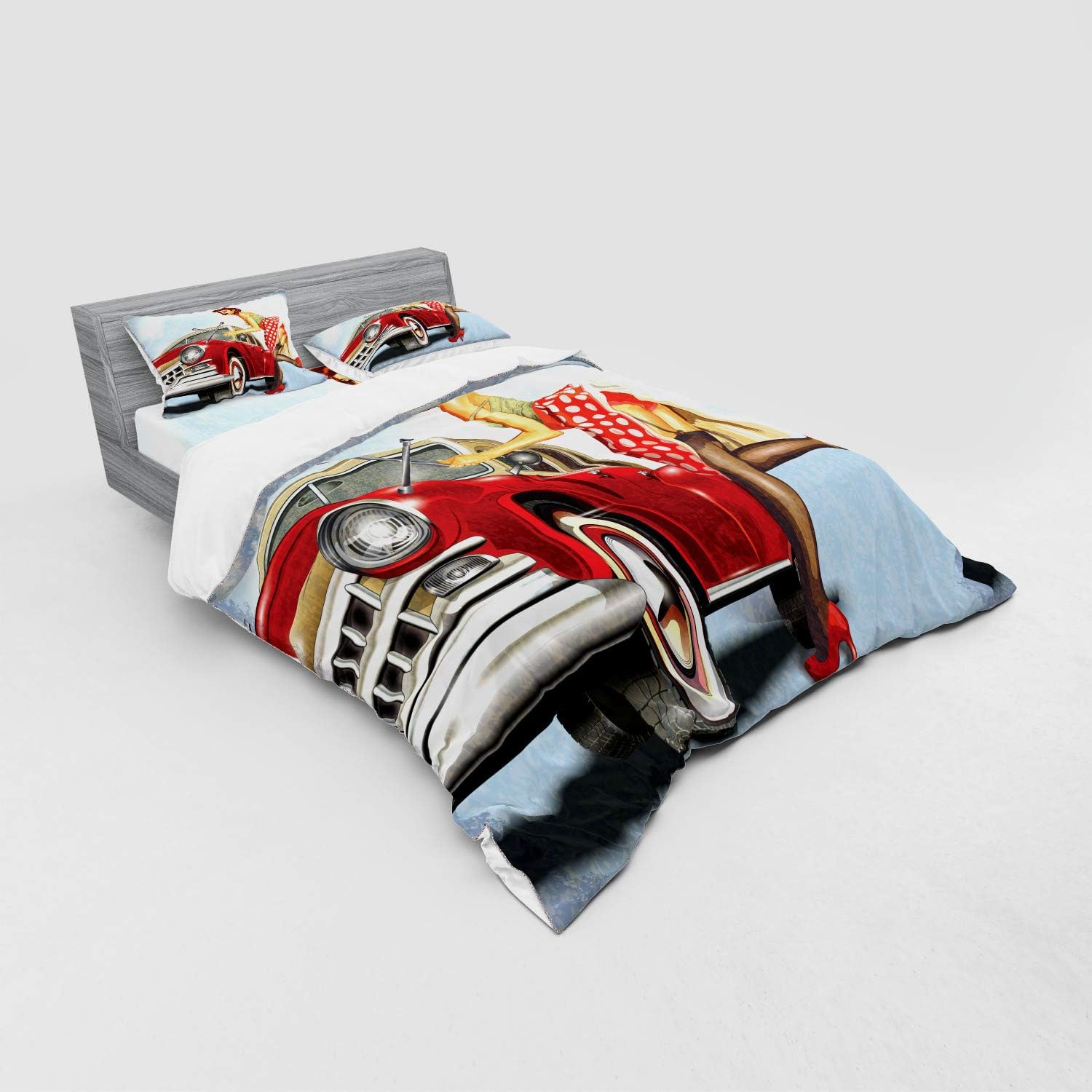 Step into a world of nostalgia with the Ambesonne Retro Pin Up Girl Duvet Cover Set. This beautifully designed bedding set features a vintage-inspired pin up girl and classic red American car print, transforming your bedroom into a stylish tribute to the past. Its vibrant polka dot pattern adds a pop of color and charm, making it the perfect choice for those who love to blend retro aesthetics with modern comfort.