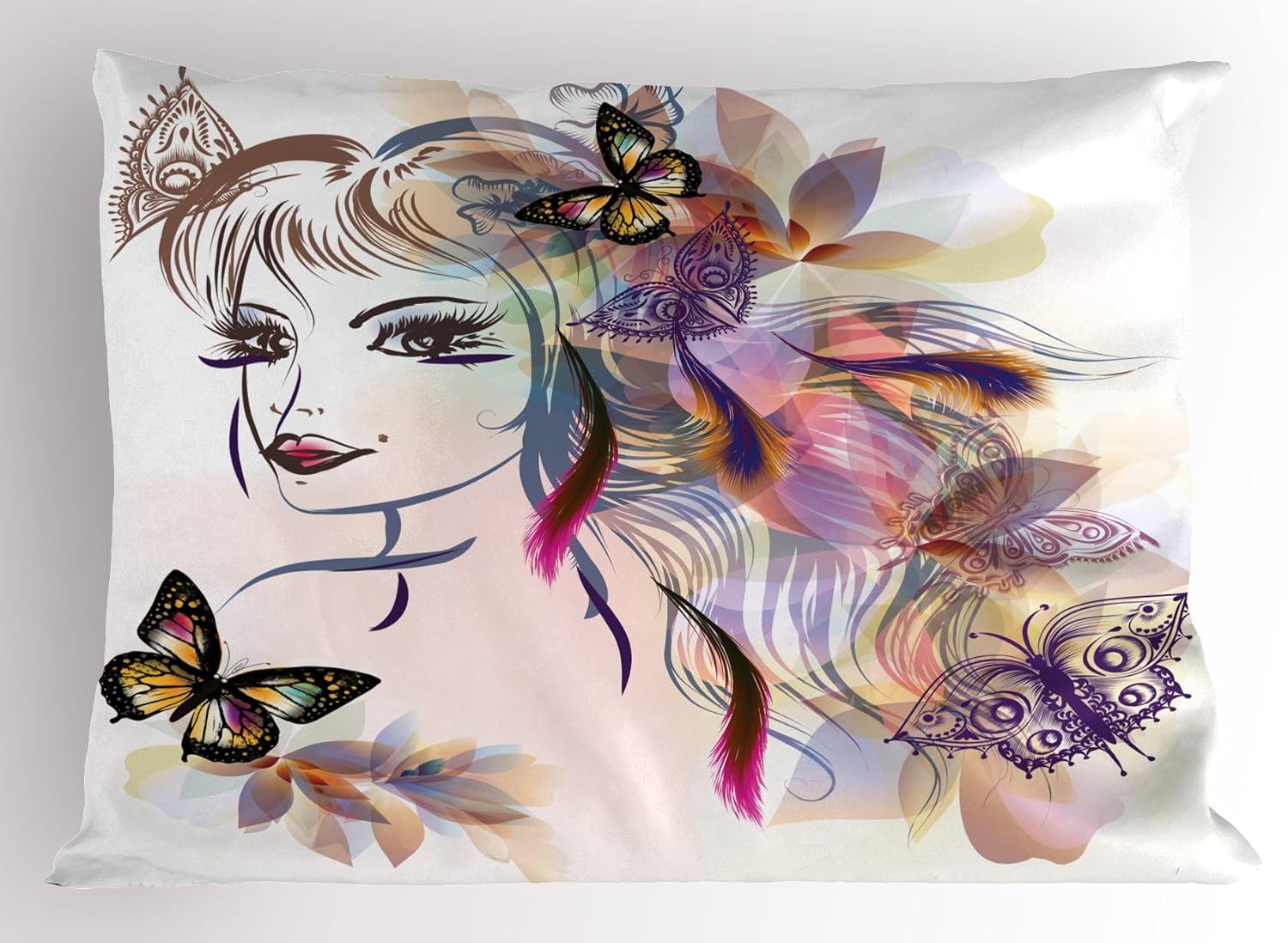 Immerse yourself in the vibrant world of printed art with this high-quality pillow sham. The detailed, no-fade printing ensures that the enchanting imagery of a girl drawing with butterflies stays clear and beautiful for years to come.