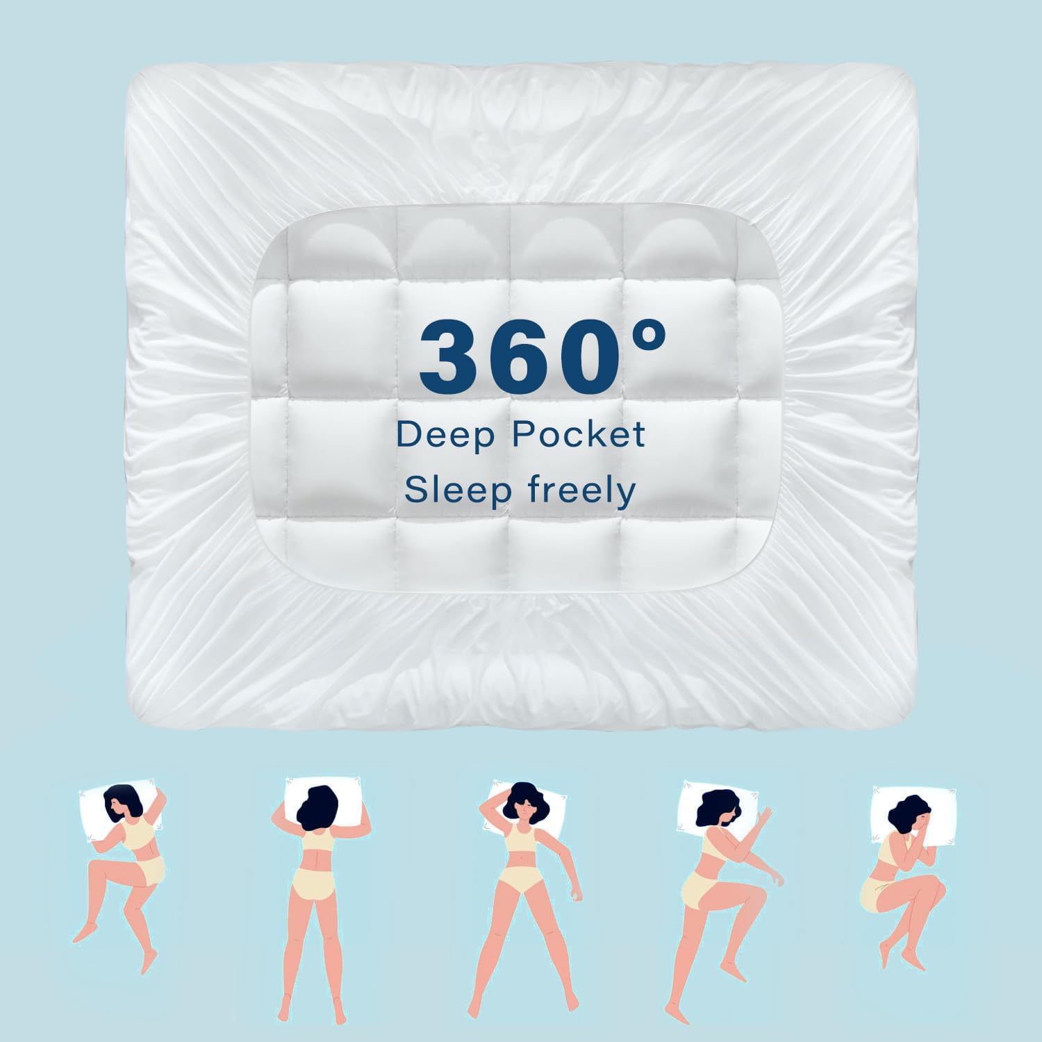 Designed to work seamlessly with both firm and soft mattresses, the deep elastic pocket construction ensures a snug and secure fit. It can accommodate up to 21-inch thick mattresses, preventing any shifting or sliding for consistent comfort throughout the night. The breathable fabric helps maintain a cool sleeping environment, while the machine-washable design makes it easy to maintain and keep fresh for long-term use.