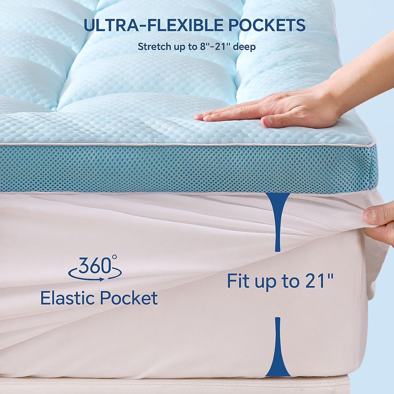 Experience the ultimate in mattress comfort with the BEDELITE Queen Mattress Topper. Itâs a premium, user-friendly solution that combines cooling technology with plush support. Ideal for summer nights or individuals who sleep hot, this topper offers a soothing, breathable surface that enhances your overall sleep quality.