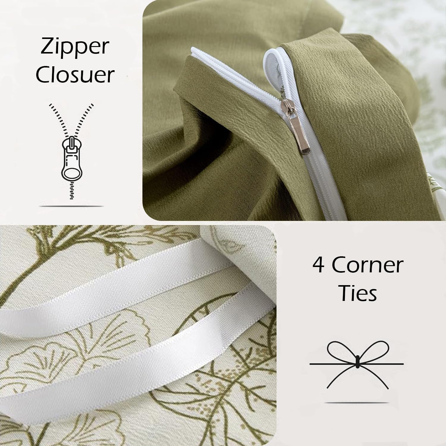 Modern and traditional bedrooms alike, this set is a versatile choice for creating a calming, stylish atmosphere. The olive green base pairs beautifully with floral accents, making it a standout piece for adding a touch of nature-inspired elegance to your space.