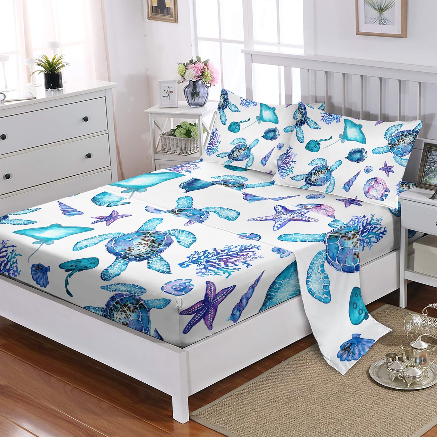 Whether you're upgrading your bedroom or searching for a thoughtful gift, this ocean-themed sheet set is a perfect fit. It's designed for twin beds, making it ideal for children, teens, or adults who want a fun yet stylish sleeping environment.