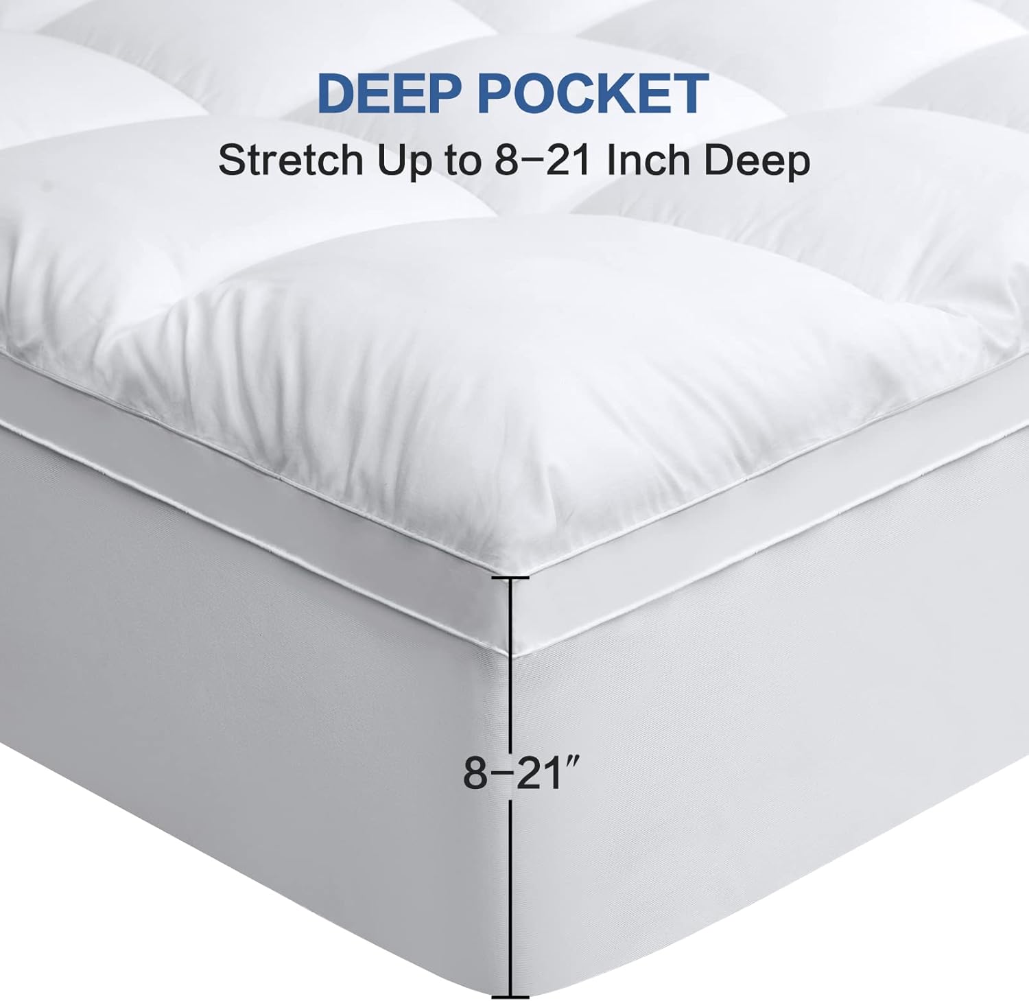 Transform your sleep with this premium mattress topper, engineered for maximum comfort and support. The extra thick design combines with 3D snow down alternative fill to create a plush, pressure-relieving surface that adapts to your body, offering soothing relief for your back and joints. Crafted from breathable 400TC cotton fabric, it keeps you cool throughout the night, making it a perfect choice for hot sleepers or those in warmer climates. The super elastic deep pockets are designed to fit 8-21 inch mattresses, securely wrapping around to maintain a stable, quiet sleep environment. Its machine-washable construction makes maintenance effortlessâjust toss it in the washer and dryer for a fresh, fluffy feel. The elegant white finish adds a timeless charm to any bedroom interior, perfect for those who prioritize a minimalist aesthetic. Looking for an upgrade to your mattress or a way to enhance your nightly rest? This COHOME cooling mattress pad delivers a perfect mix of softness, breathability, and firm support. Ideal for anyone who values a peaceful sleep experience without compromising on quality or style.COHOME Queen Size Mattress Topper