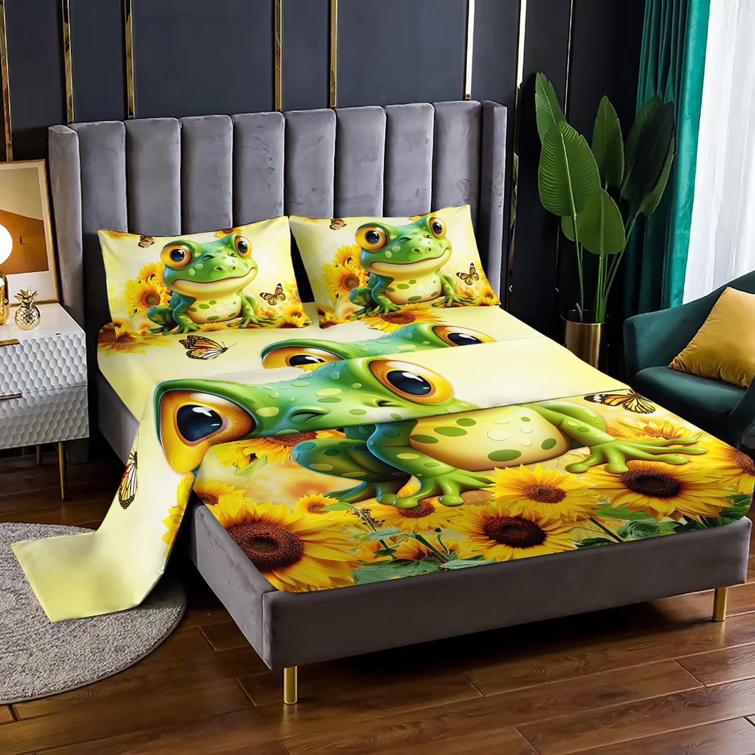 Bring a touch of wonder and charm to your bedroom with this enchanting Cartoon Green Frog Sheet Set. Designed for those who adore a playful and nature-inspired aesthetic, it features lively 3D animal and botanical prints that create a magical, whimsical atmosphere. Whether you're looking to make a childâs room more inviting or simply upgrade your own space, this bedding set offers a vibrant and joyful style that's both durable and comforting.