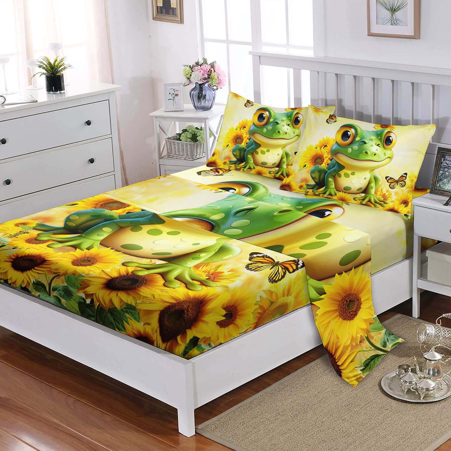 Looking for a special gift? This Cartoon Green Frog Sheet Set is a delightful choice for birthdays, holidays, or any celebration. Its cheerful design and comfort make it a perfect addition to any bed setup, whether for a home or on the go.