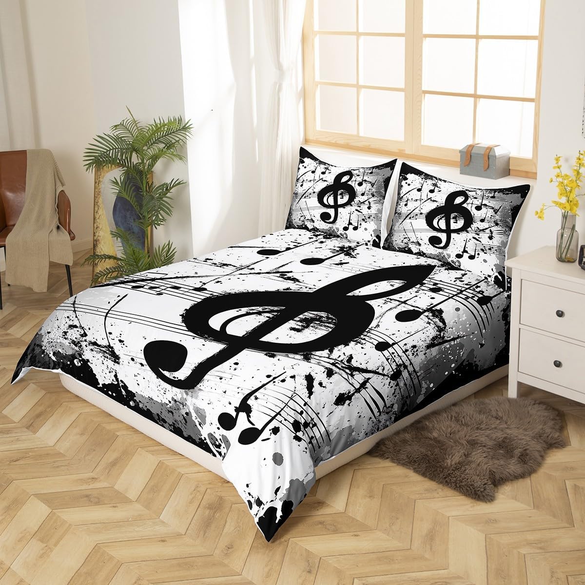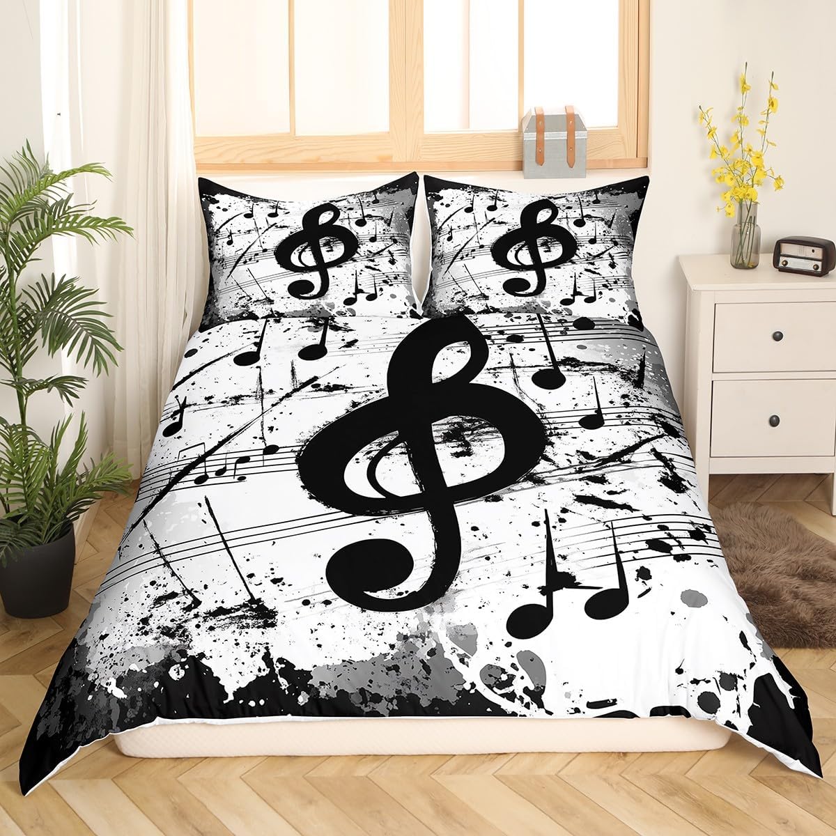 With a zipper closure for easy use and four corner ties to keep your comforter secure, it's both functional and stylish. The abstract design is versatile enough to complement a wide range of home styles, from contemporary to gothic. Ideal as a gift for music lovers of all ages, this set is a wonderful way to express creativity while ensuring comfort every night.