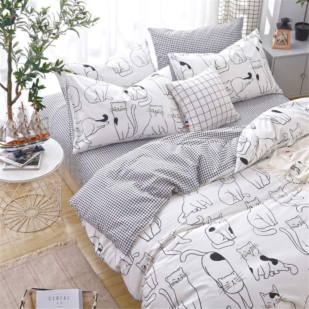 This Cats Duvet Cover Set Queen is designed to bring both comfort and charm into your child's bedroom. Crafted from 100% organic cotton, it feels soft and breathable, making it ideal for sensitive skin and promoting a good night's sleep. The reversible design adds versatility, offering a white plaid side and cartoon cat prints on the otherâperfect for customizing your decor without needing to replace your bedding.
