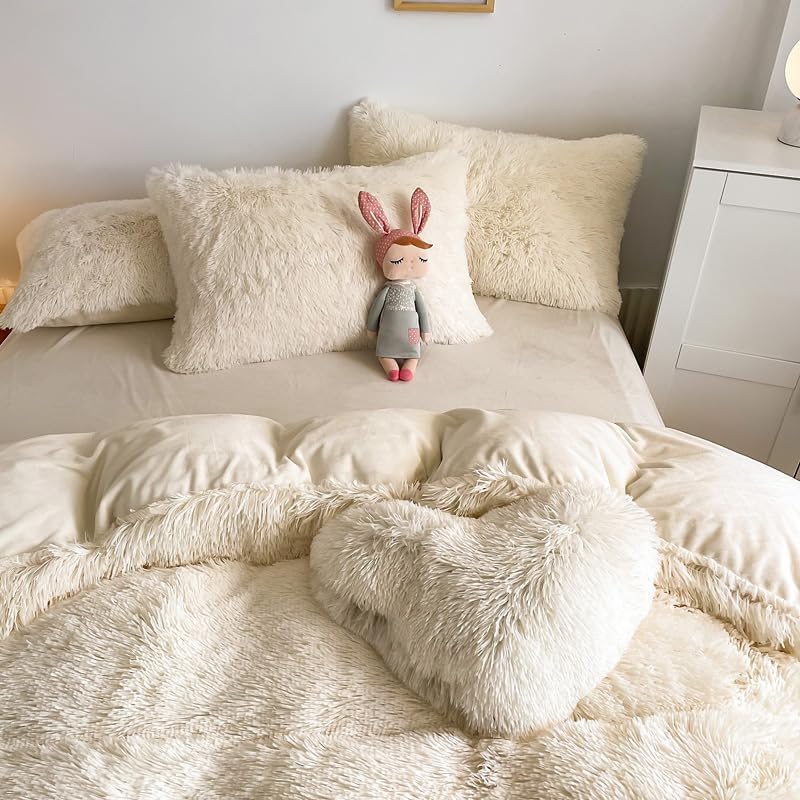 The set comes with one queen-sized comforter and two standard pillowcases, delivering a complete and elegant bedding solution. Its high-quality stitching ensures the plush remains flï¿ and retain its shape over time, offering long-lasting comfort and style.