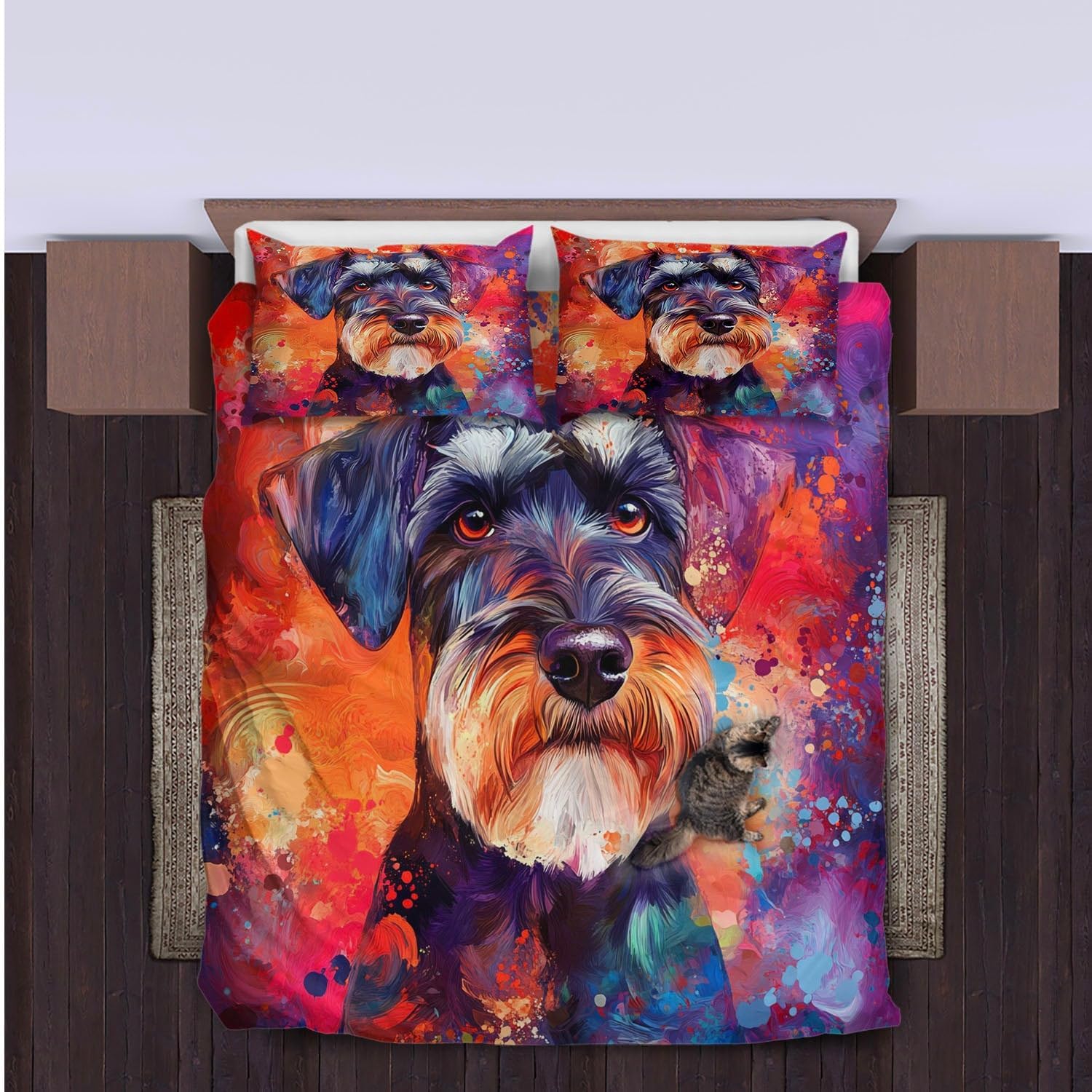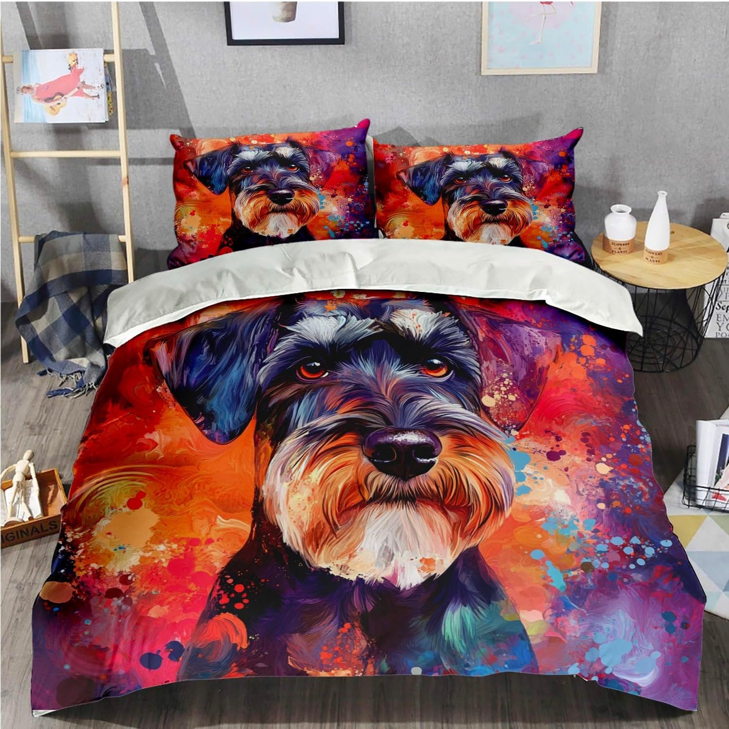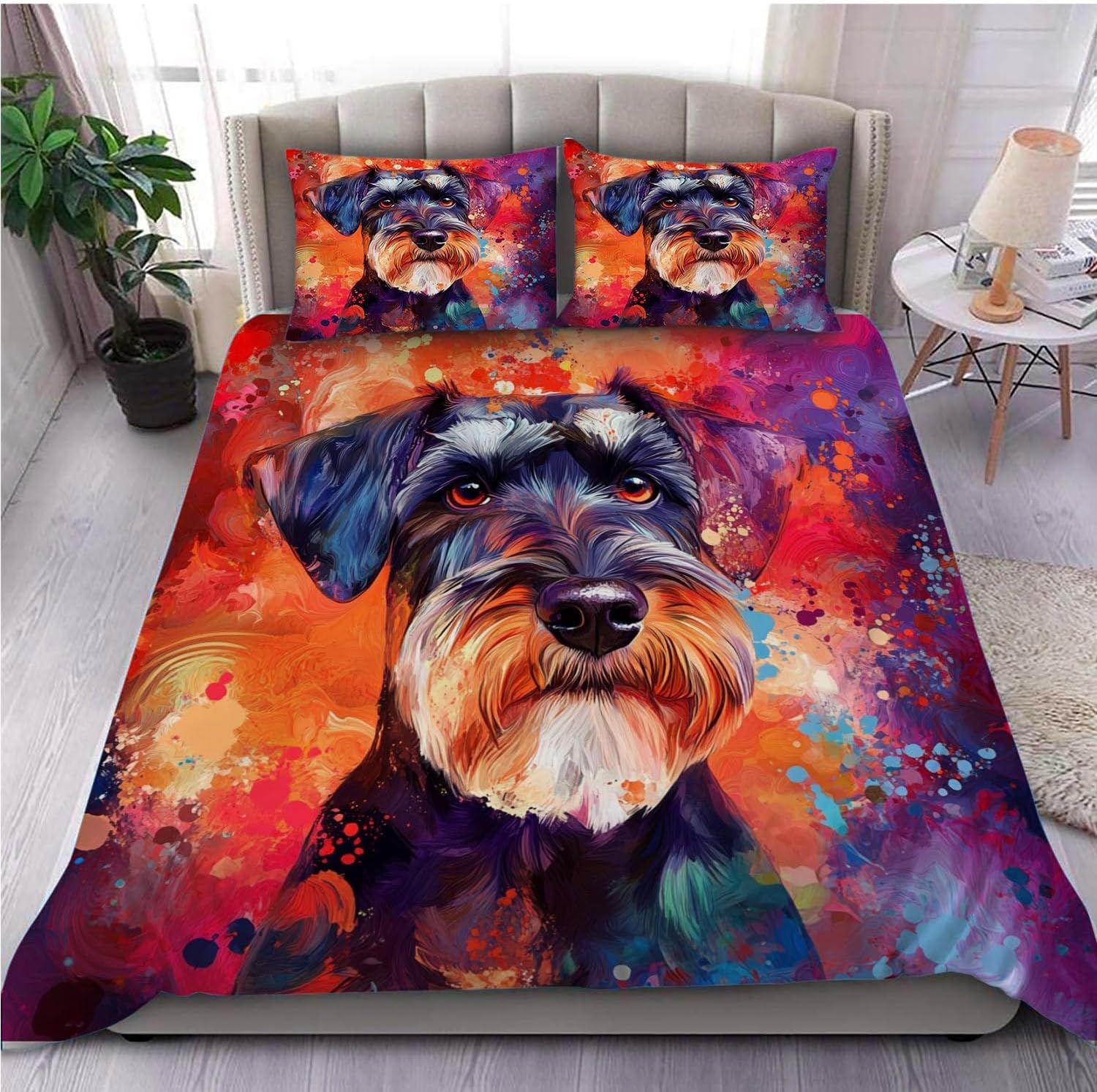 Bring a touch of playful charm and comfort to your childâs room with this stylish 3-piece duvet cover set. Featuring a charming Standard Schnauzer pattern, this set is both a great gift and a perfect addition to any kidsâ bedroom décor. The soft, breathable brushed polyester fabric ensures a cozy nightâs sleep, while the durable, single-sided 3D print design adds a unique and eye-catching look to your space.