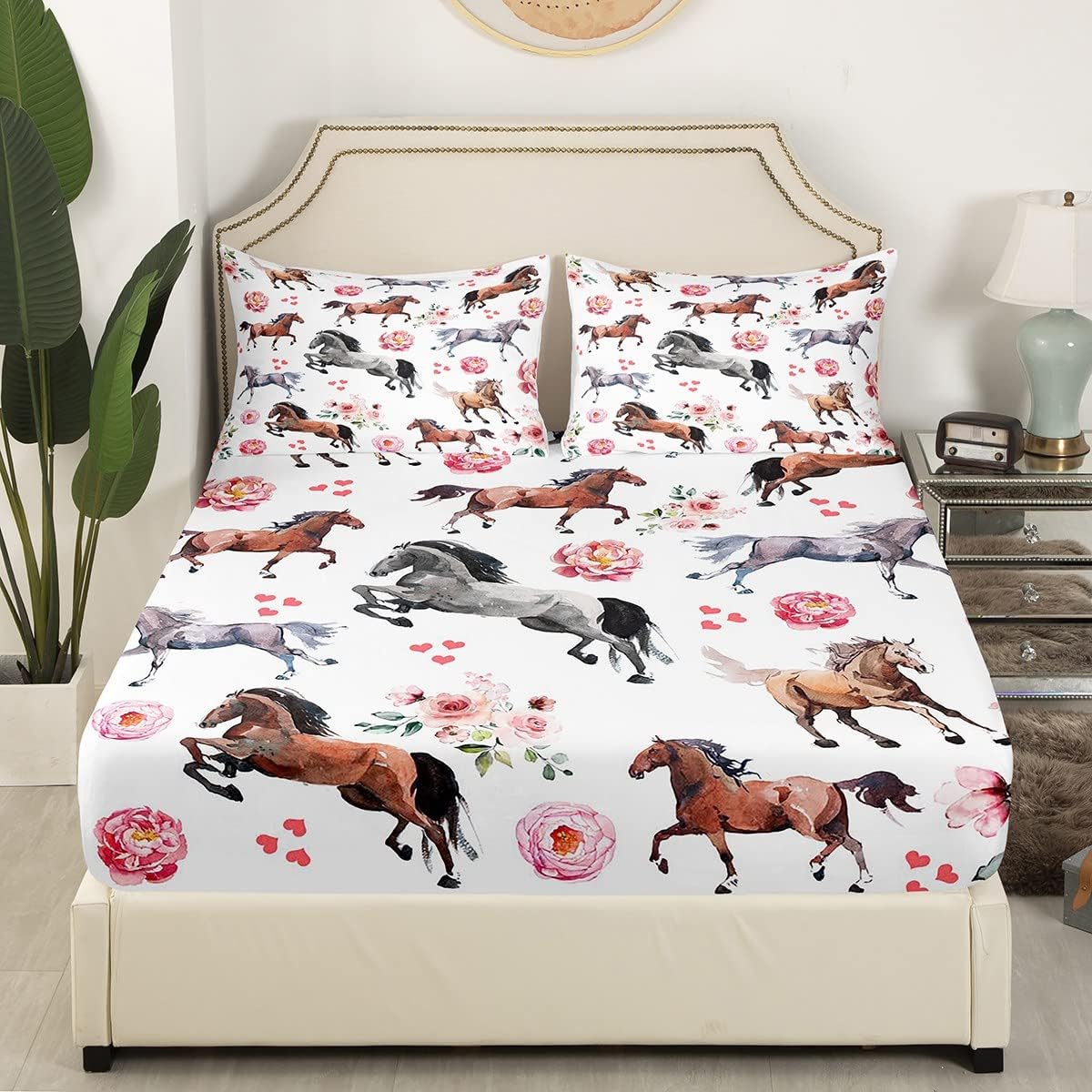 Erosebridal offers a charming horse print microfiber bedding set with a fitted sheet and pillowcases. Perfect for kids, teens, or adults, this set features soft brushed fabric and vibrant designs for cozy comfort and stylish appeal.