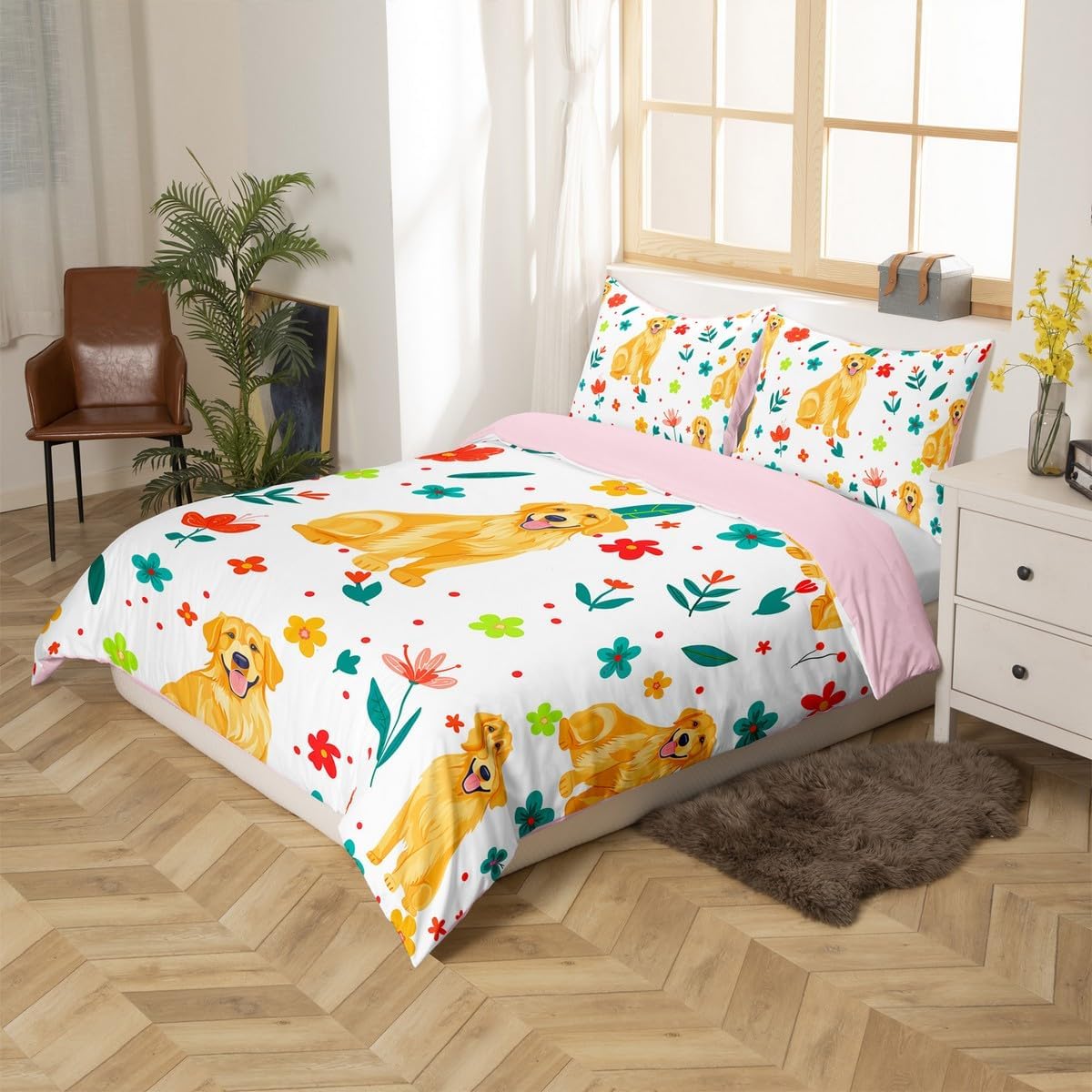 This Queen Duvet Cover Set from Erosebridal is more than just beddingâit's an expression of personality. The high-quality polyester microfiber ensures a silky, breathable feel thatâs gentle on your skin and keeps your bedding looking fresh. With its lively cartoon dog and floral design, it brings a sense of fun and charm to any room, whether itâs a nursery or a personal retreat.