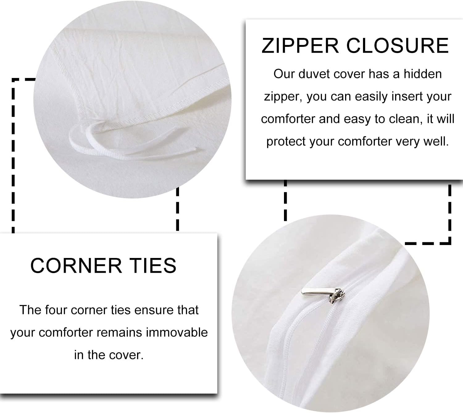The Hidden Zipper Closure and Corner Ties make it simple to secure the cover on your comforter, offering a snug fit and hassle-free setup. It's built to last and designed to be machine washable and tumble dry friendly, so you can enjoy its softness without compromising on care.