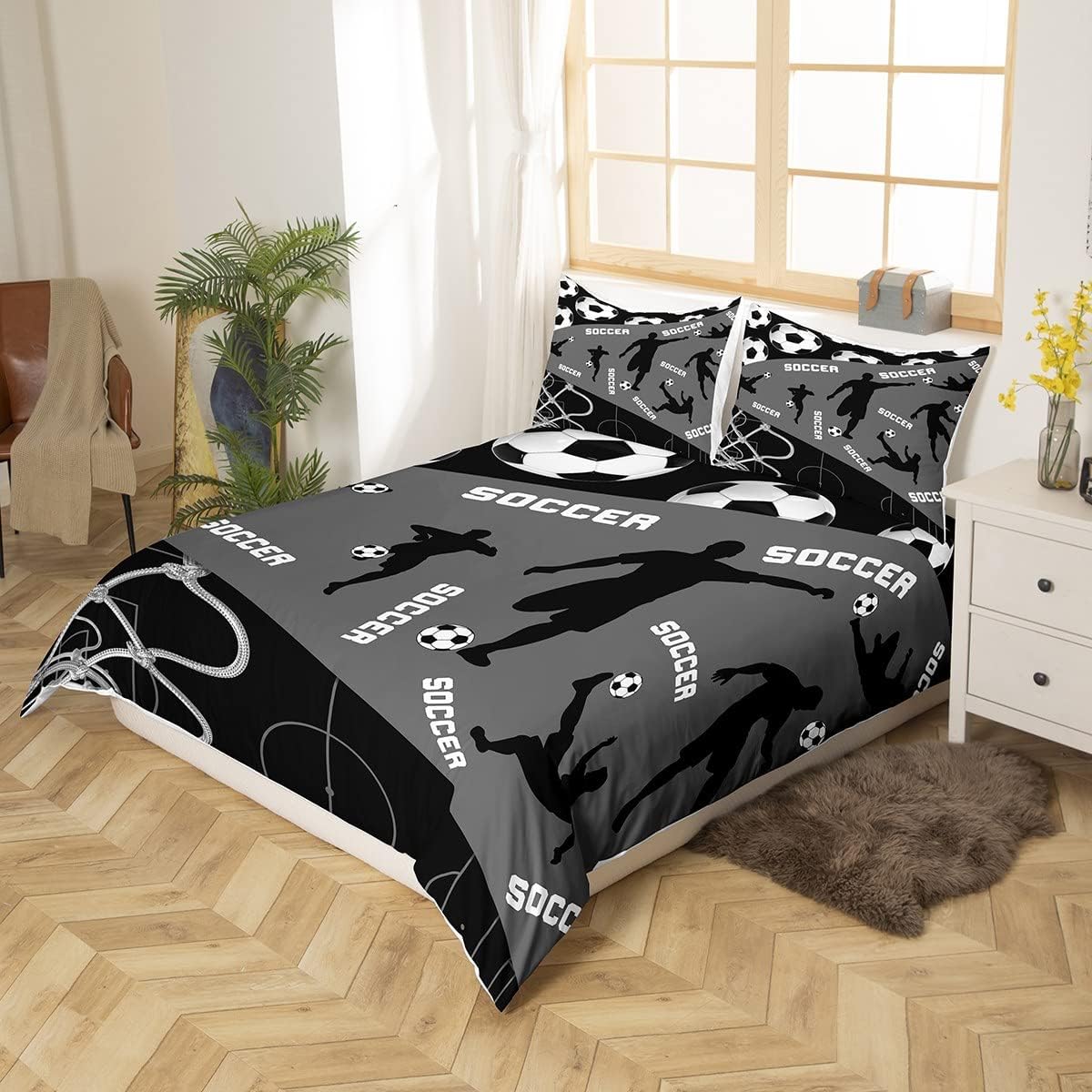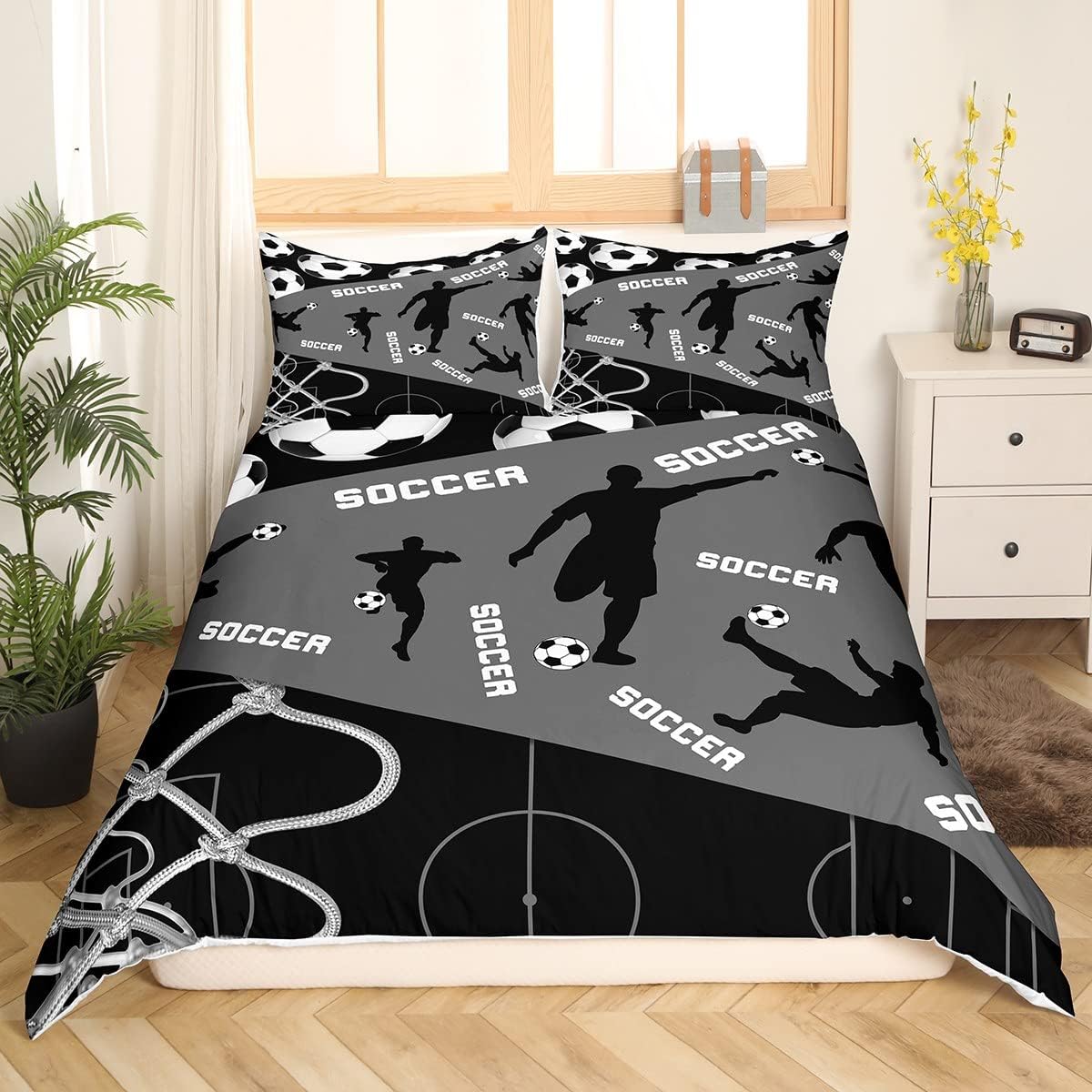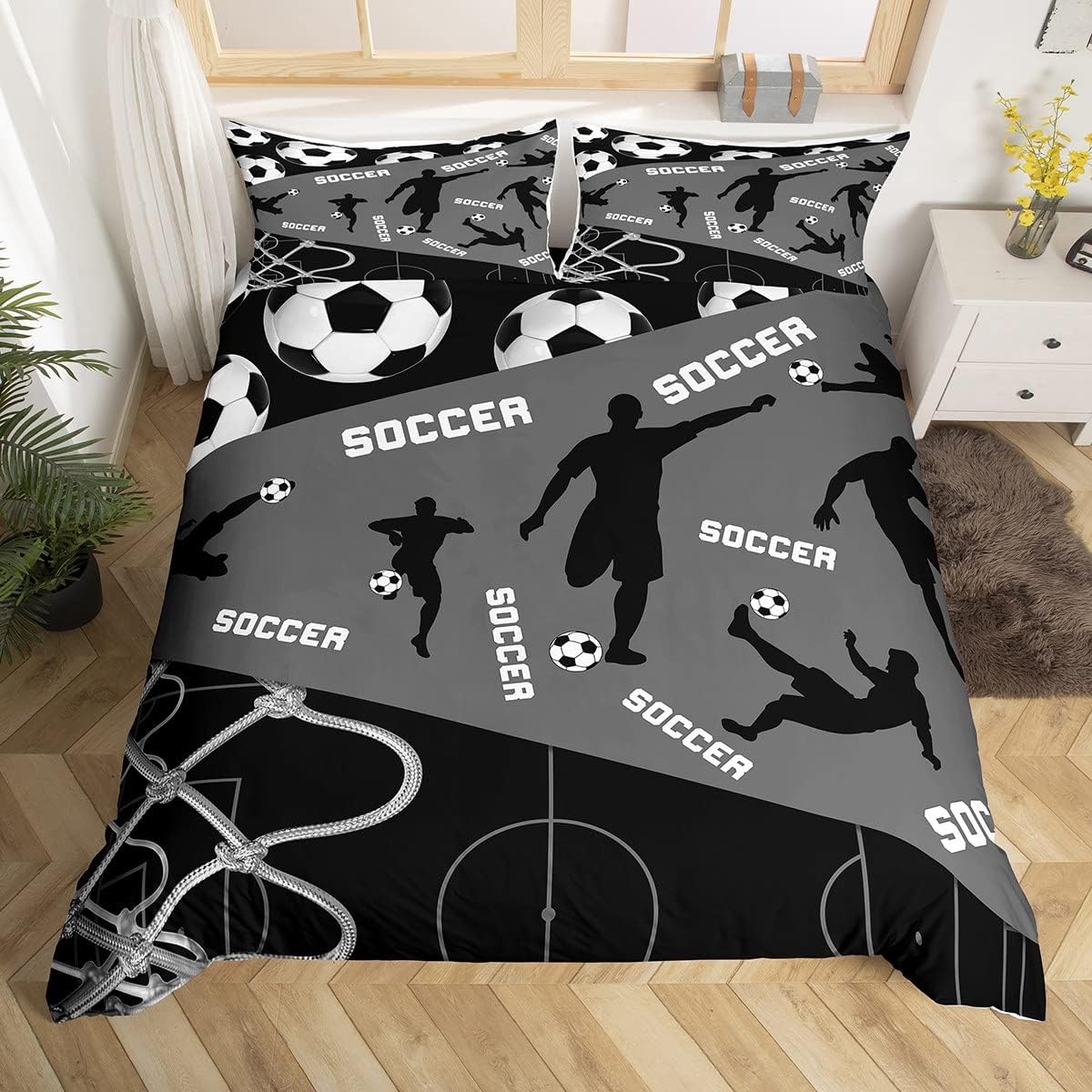 The vibrant soccer print is meticulously crafted using advanced 3D printing technology, creating a bold and dynamic design that won't fade over time. This ensures your bedroom stays stylish and exciting for years to come.