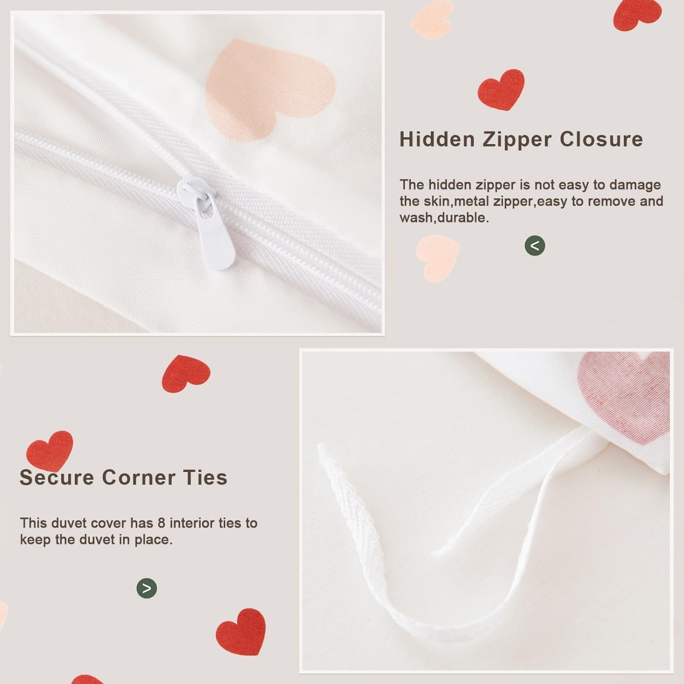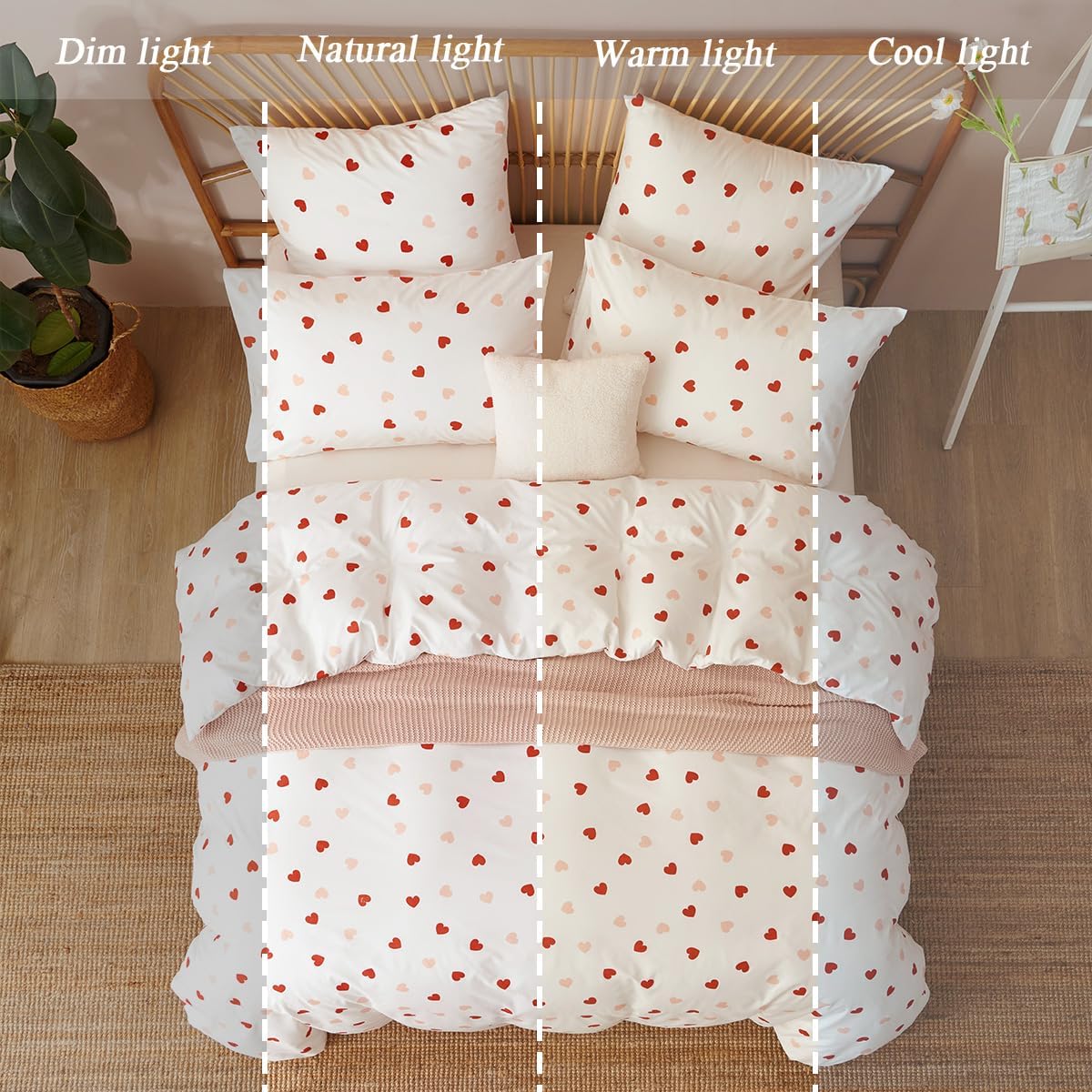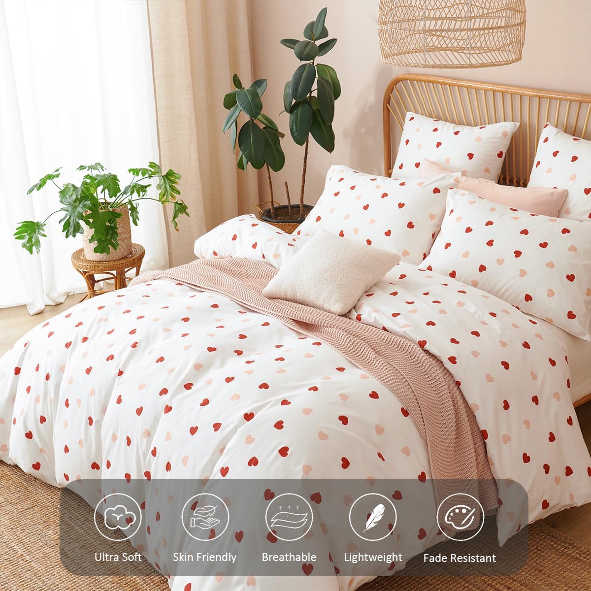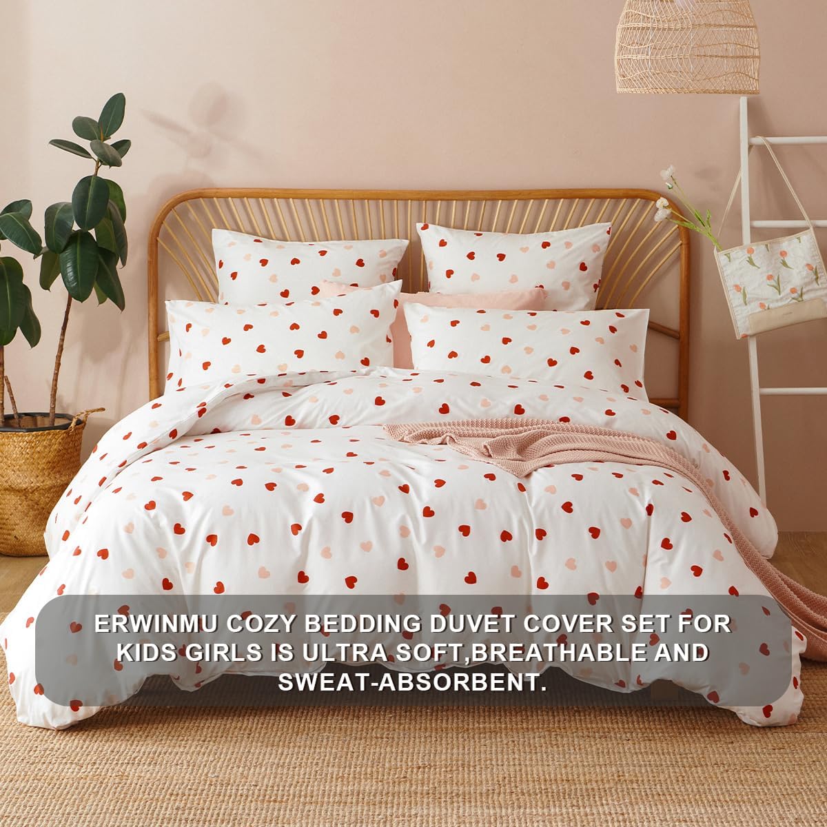 Transform your bedroom into a cozy and stylish retreat with this dreamy duvet cover set. Featuring a charming heart print in vibrant white, pink, and red, it adds a delightful touch of kawaii aesthetics that's perfect for girls, teens, and anyone who loves playful bedroom decor.