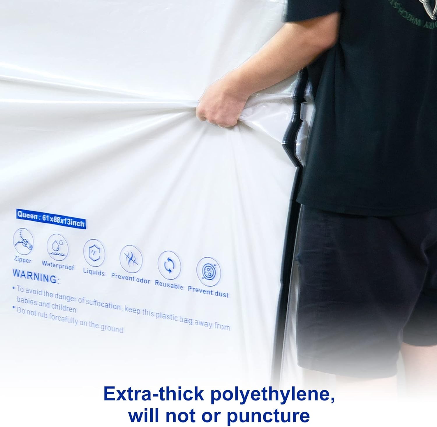 Find the best mattress encasement to protect your mattress during moving or storage. Look for a queen mattress cover that's waterproof, dustproof, and durable. Choose a waterproof mattress bag made from heavy-duty 6 mil polyethylene for maximum protection. A moving mattress protector thatâs easy to use and secure can make your transition smoother. The storage mattress cover you need is also eco-friendly and reusableâideal for smart, sustainable living.