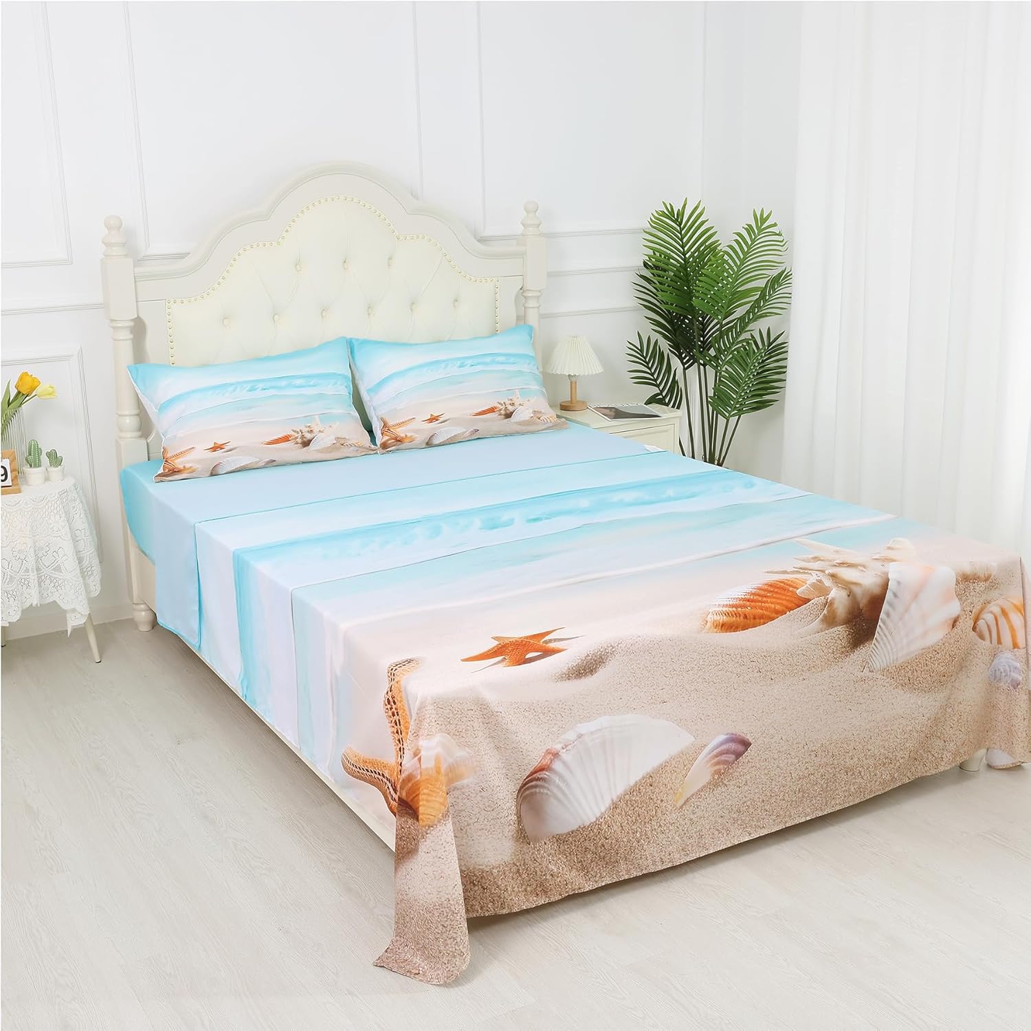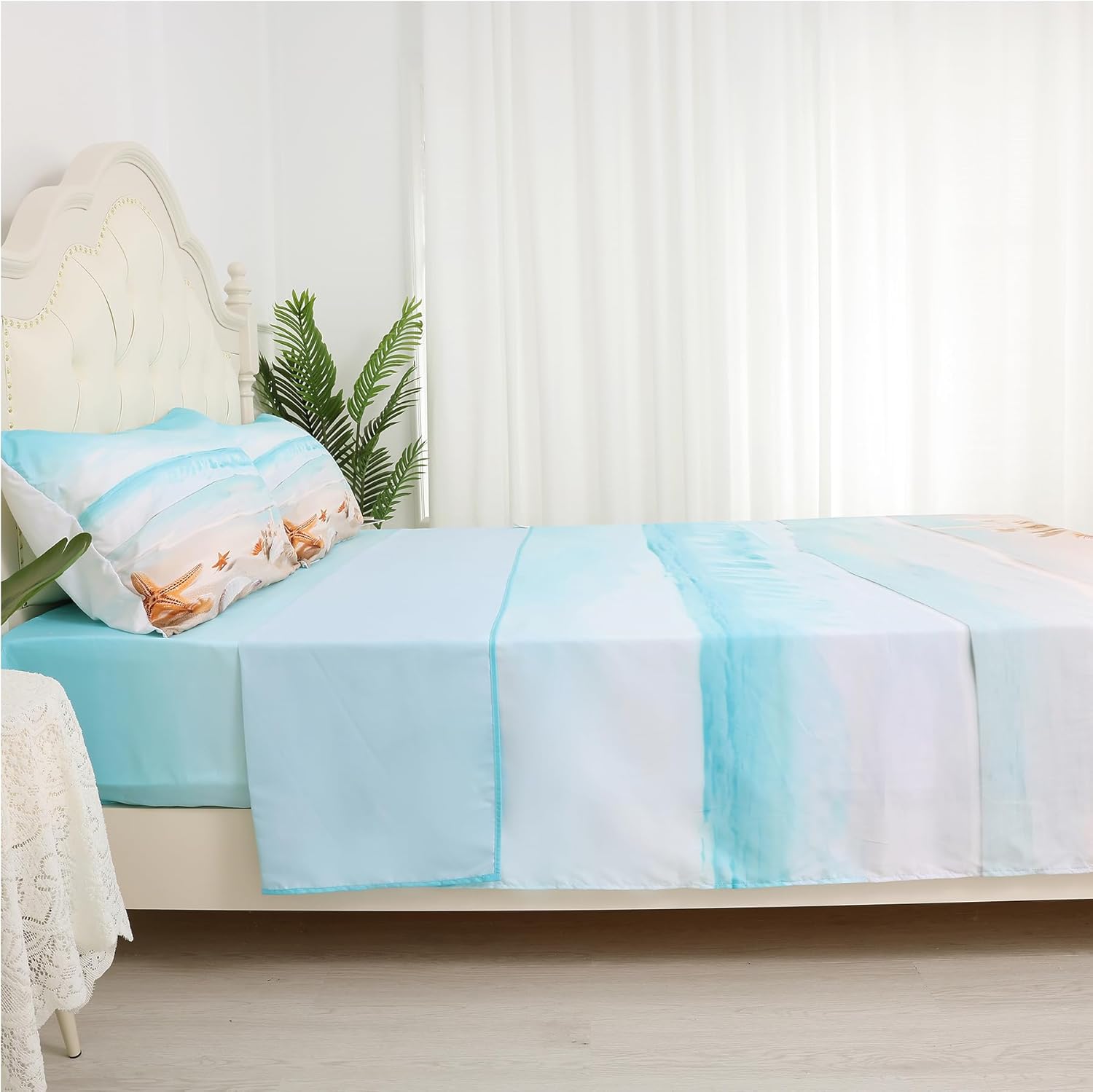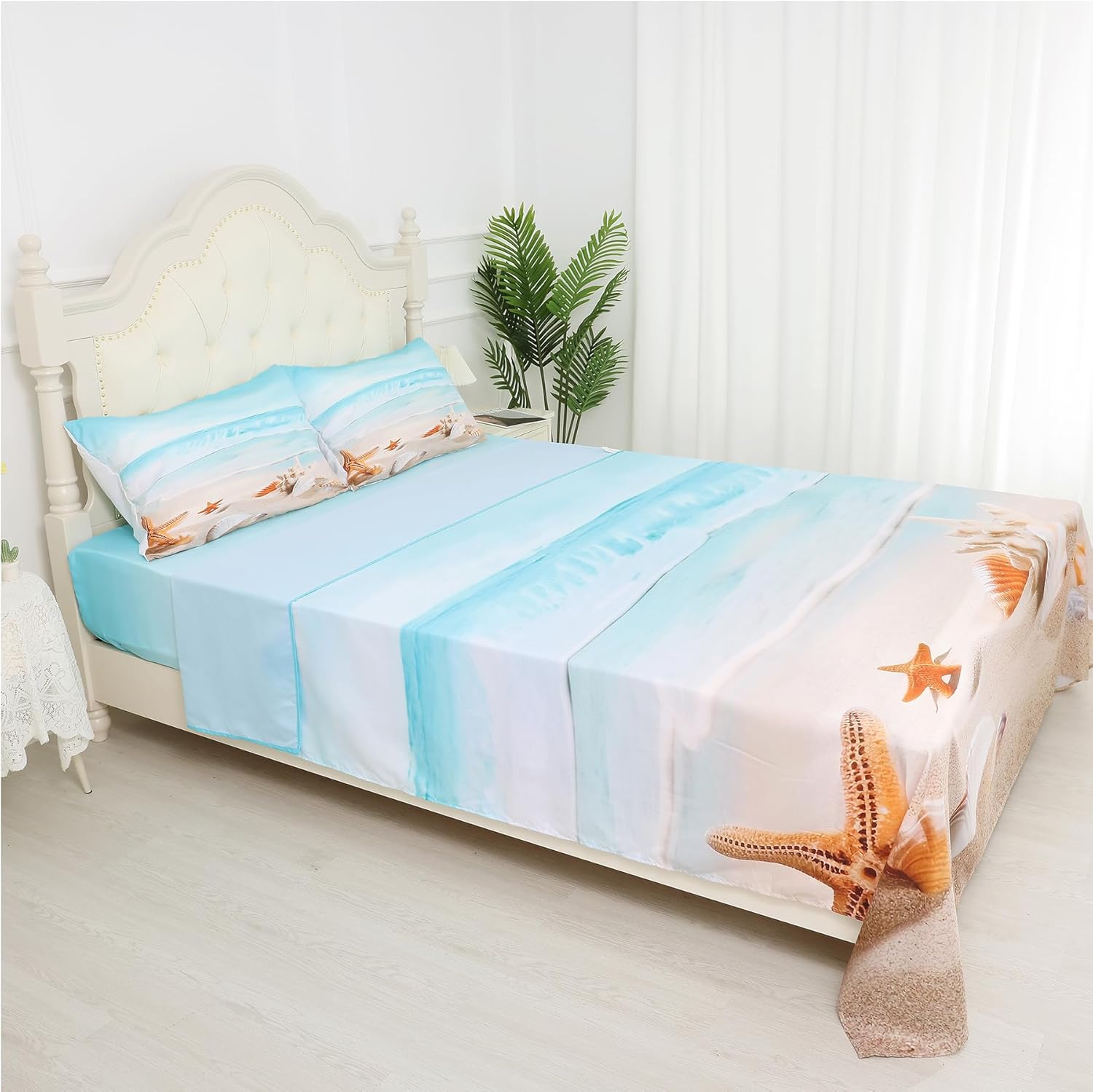 Bring a splash of summer magic to your child's room with this adorable coastal blue bed sheet designed with a playful starfish themed bedding pattern. Perfect for kids bedding set and ideal for queen size sheets, this set combines style and comfort to create a cozy sleeping environment that your little one will love.
