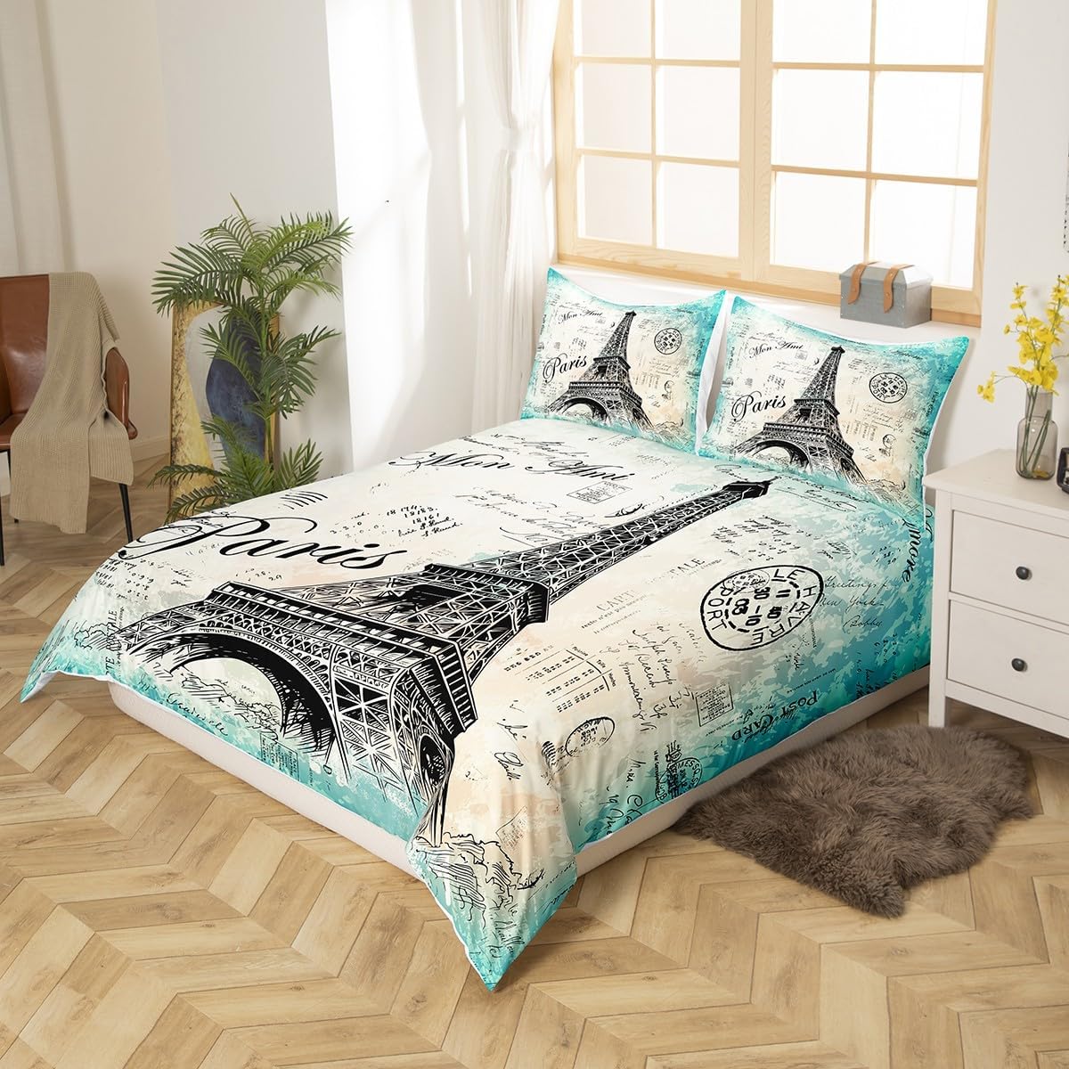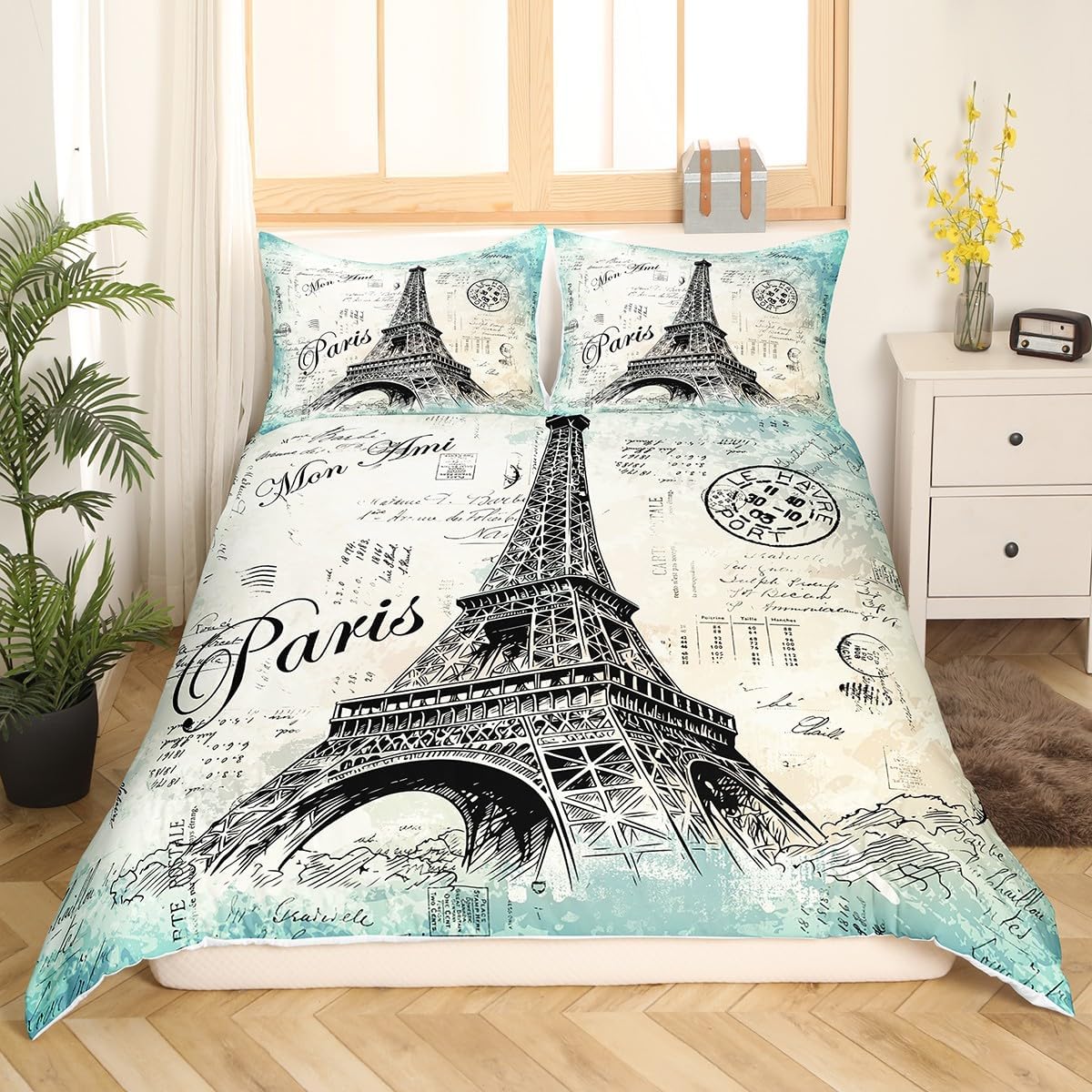 Eiffel Tower duvet cover, retro Paris bedding set, vintage duvet cover set, chic bedroom decor, 3D printed bedding set â all in one stylish package. Perfect home decor that brings a piece of Paris into your own space.