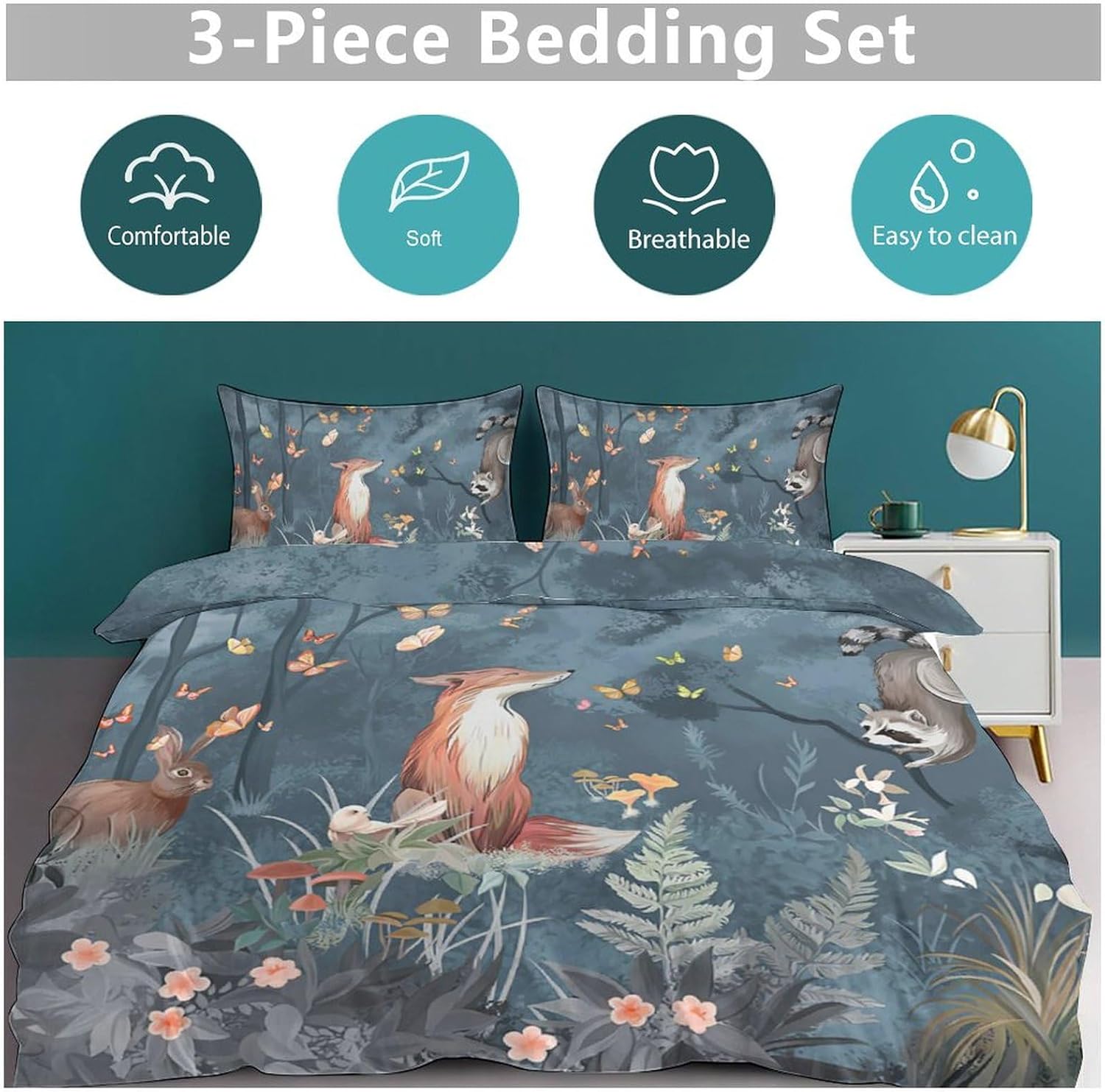 Designed for easy care, this duvet cover set 3 piece is machine washable and maintains its shape and color even after repeated use. The printed pillowcase adds a playful yet sophisticated element to your bedding, making it an ideal choice for families or individuals seeking both style and function. With a rustic and charming woodland print, this set is not only comfortable but also a great way to add a unique home aesthetic that reflects your personality.