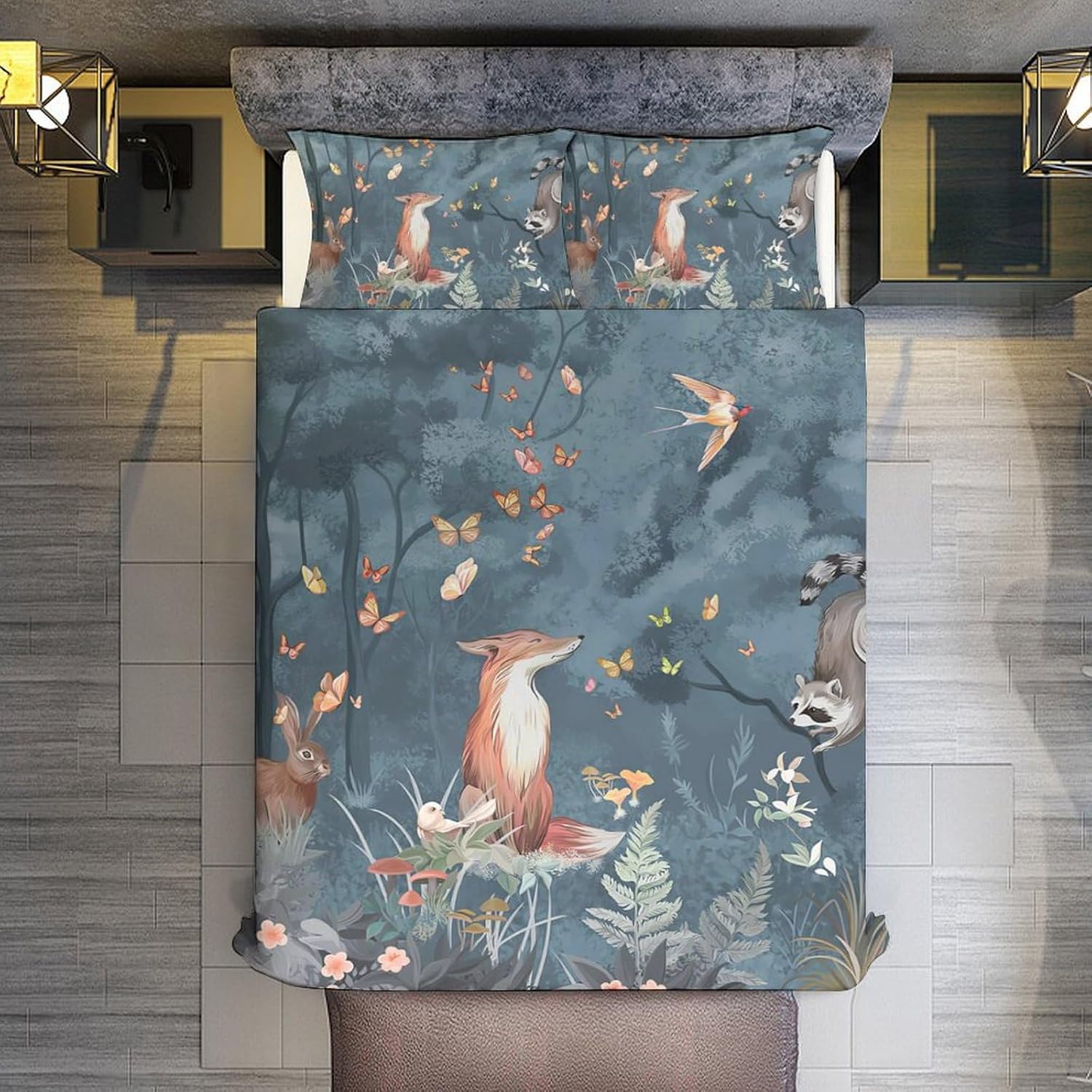 Bring the magic of the forest into your bedroom with our exquisite woodland duvet cover. This 3-piece bedding set features a beautiful, double-sided printed design, offering a stunning and eco-friendly touch to your space. Whether you're furnishing a child's room, a young adultâs bedroom, or simply looking for a unique way to enhance your own decor, this set is perfect for every setting.