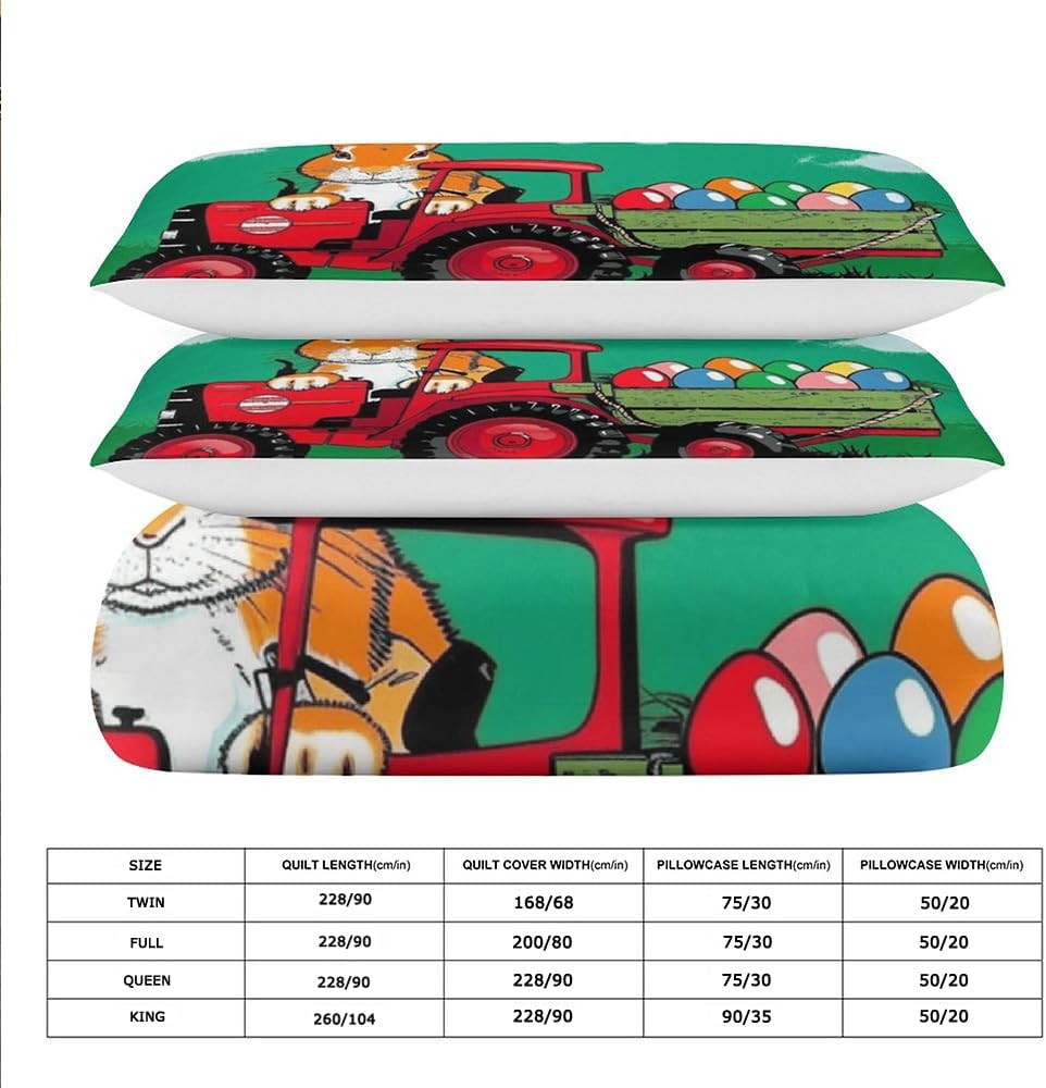 This duvet cover set features a bold red bunny truck print, perfect for adding a playful and festive touch to your child's bedroom. Whether for a birthday, Easter, or any other special occasion, it makes the room feel extra cheerful without the need for a complete bedding change. The set comes with 1 duvet cover and 2 coordinating pillow shams in queen size, creating a cohesive and stylish look that is both charming and easy to maintain. Crafted from high-quality polyester microfiber, it offers a soft and breathable feel, ensuring comfort throughout the year. Designed to be machine washable and durable, this kids bedding set is a great choice for hassle-free care. It's also an ideal gift that brings joy and excitement to your little oneâs bedtime routine, turning ordinary nights into memorable ones.GAWEKIQE Duvet Cover Set â Bring Fun and Festivity to Your Childâs Room