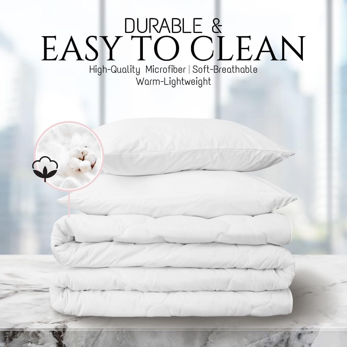Experience unmatched warmth and softness with a premium down comforter that's both durable and comfortable. The fluffy fill ensures a restful sleep in any weather.