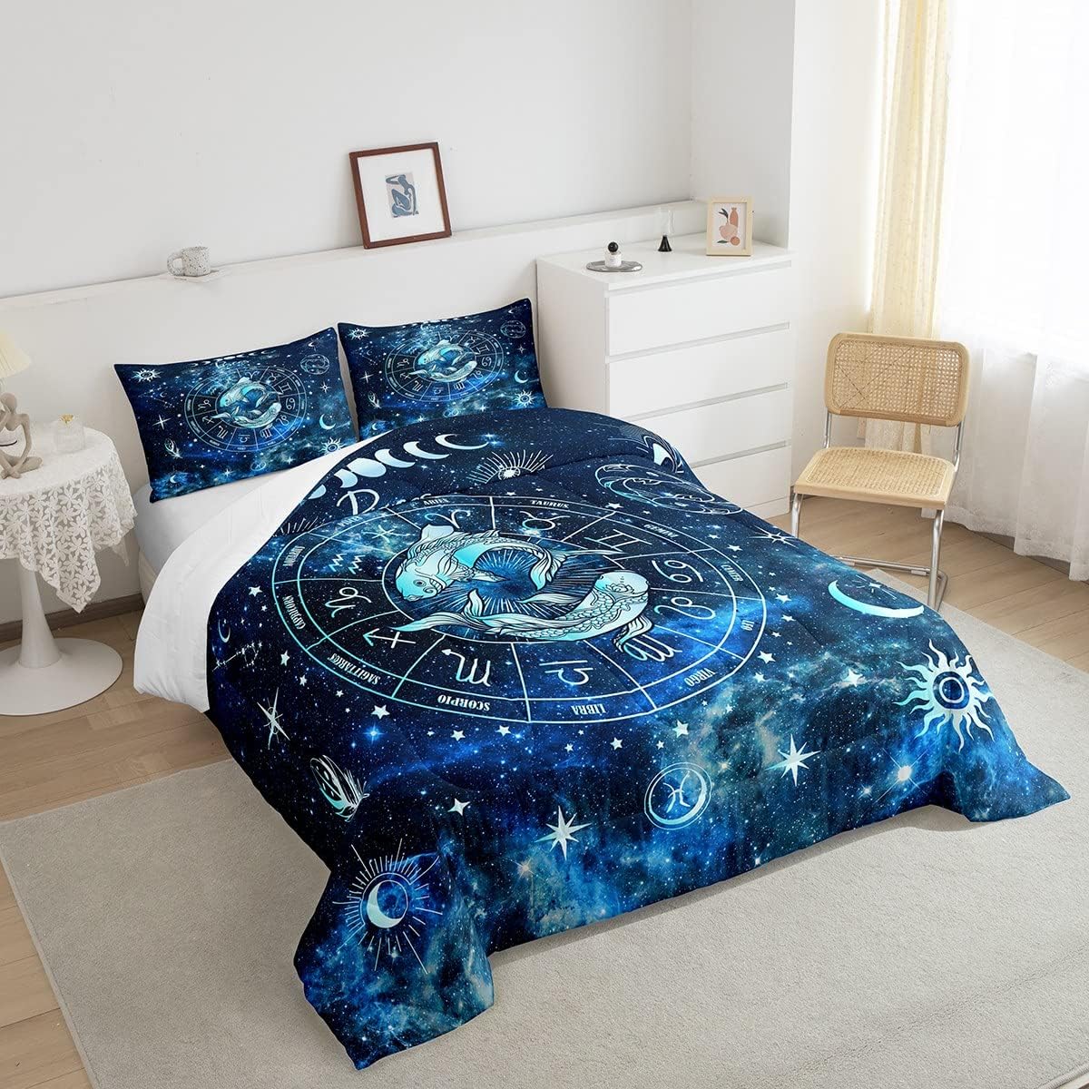Elevate your bedroom with this beautifully designed Pisces Comforter Set. A perfect choice for zodiac lovers and those looking for cozy, stylish bedding that works for all ages and seasons.