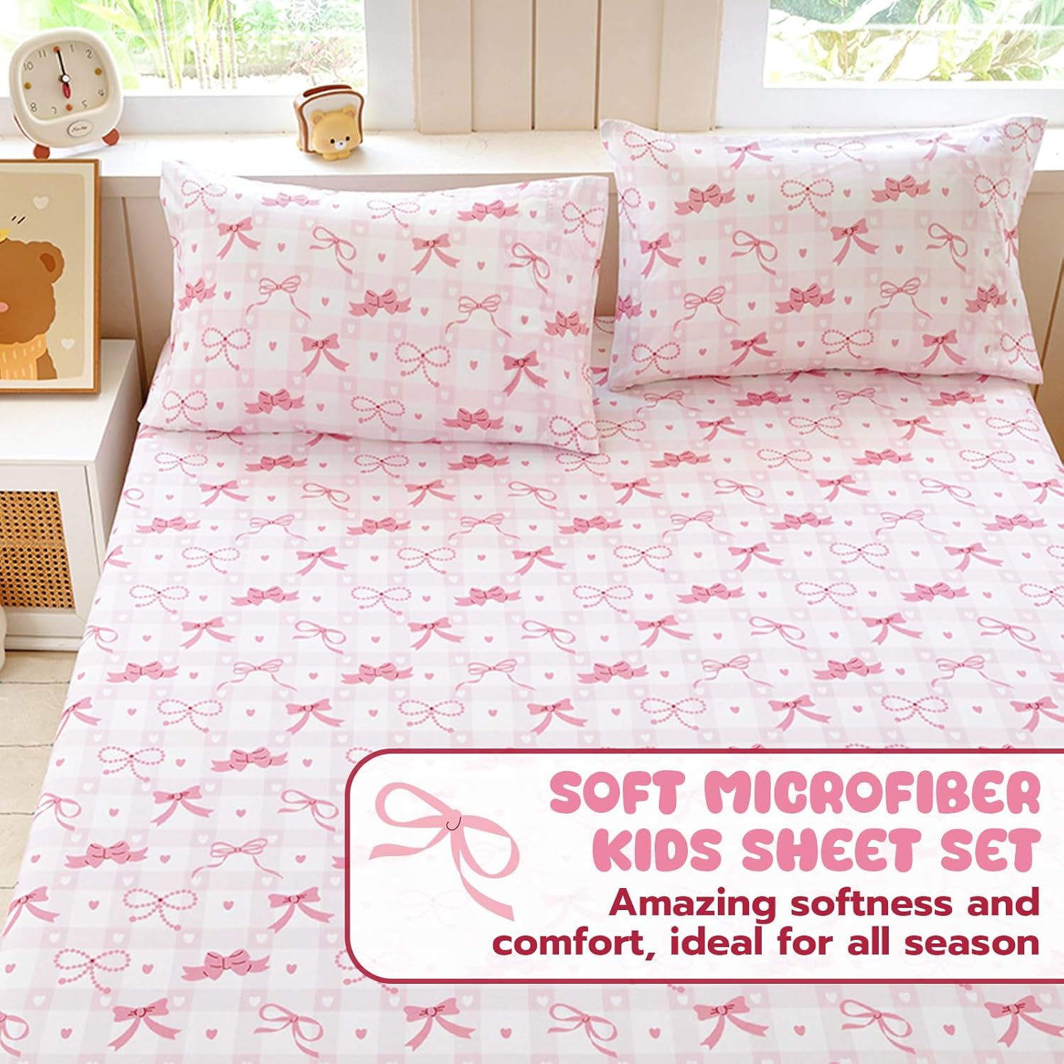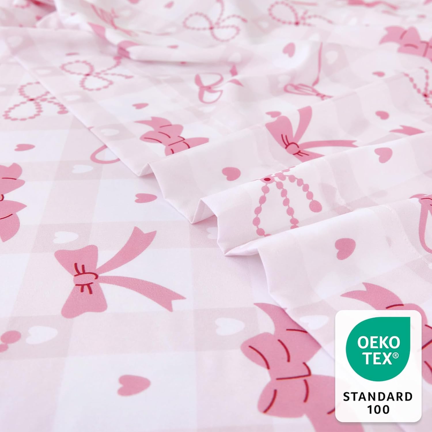 These Homilay Queen Kids Sheets Set bring a delightful touch to your childâs room with vibrant pink bow patterns that are both fun and stylish. Perfect for boys, girls, teens, or toddlers, the set is designed to create a comfortable and safe sleep environment, making bedtime a more enjoyable experience for the whole family.
