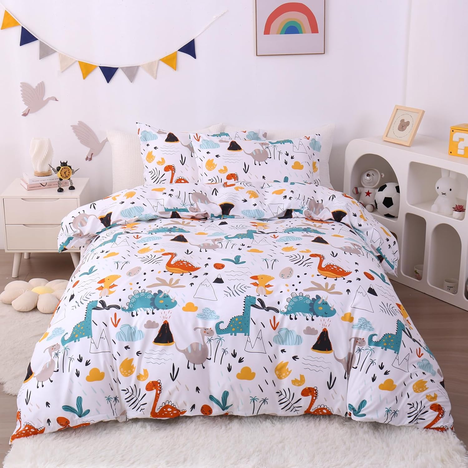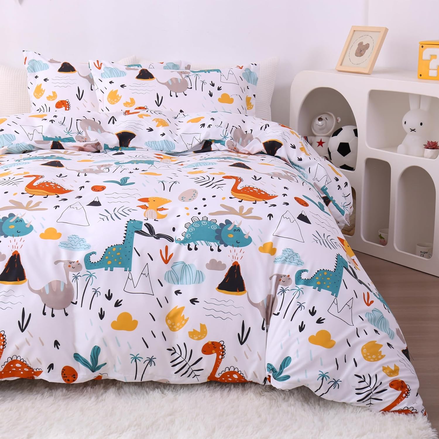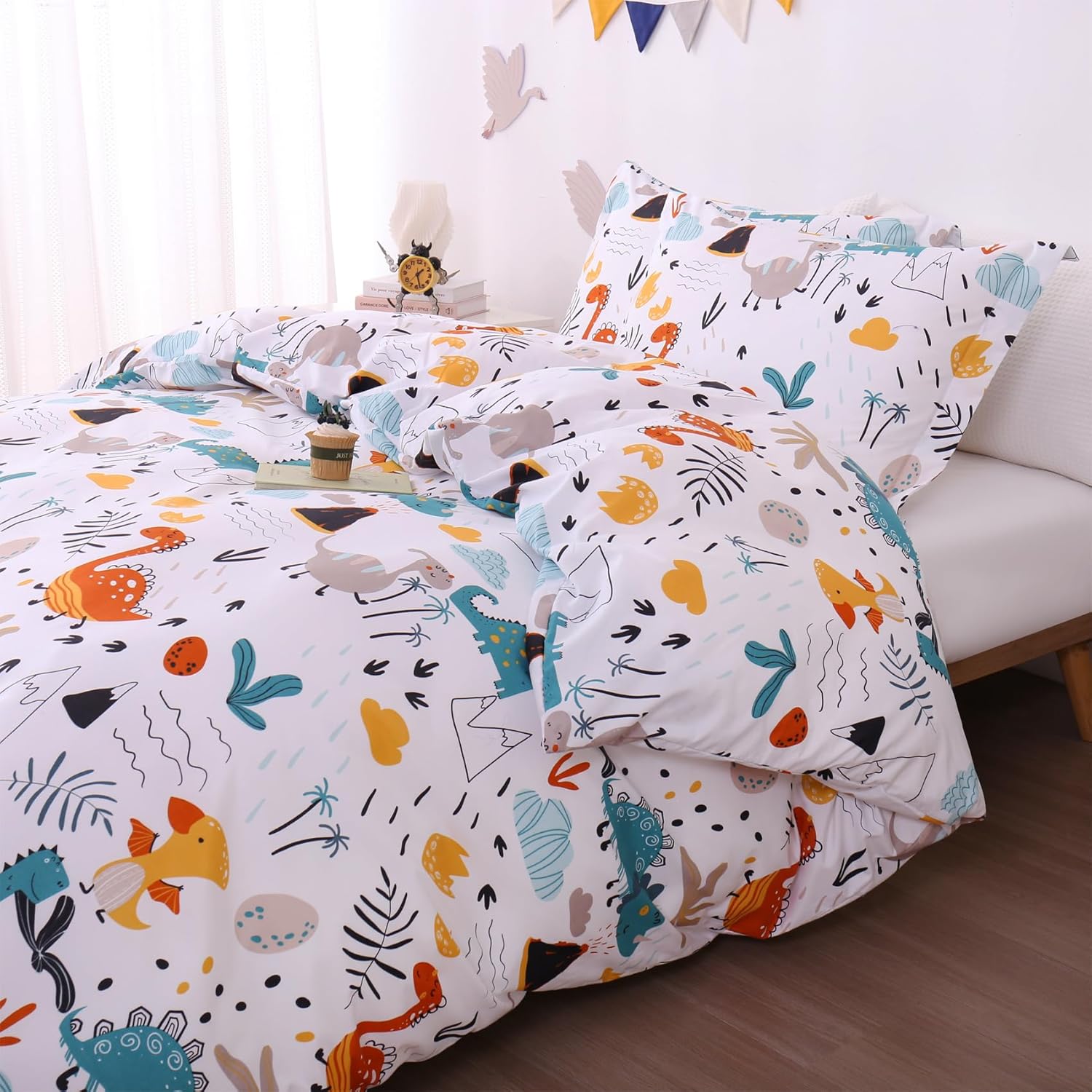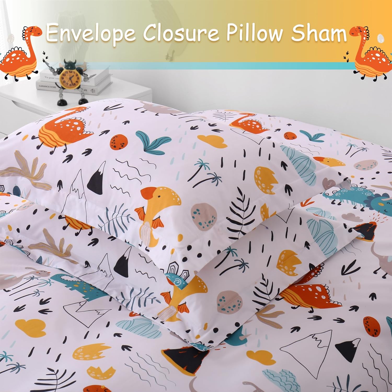 Featuring charming dinosaur prints, this set is more than just beddingâit's an invitation to imagination. The playful design helps spark creativity and makes sleep time a magical experience. Designed with a secure zipper closure and corner ties, it ensures the duvet stays in place all night, keeping your child cozy and undisturbed.
