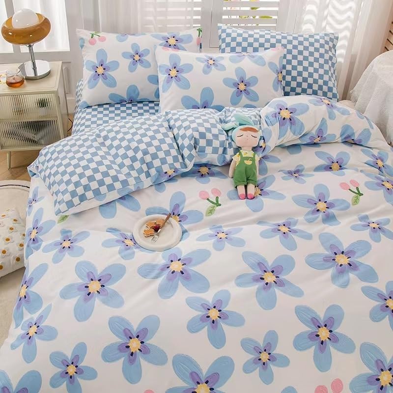 Featuring a charming flowers pattern, the duvet cover adds a playful and whimsical touch to any girlâs room, creating a bright and inviting atmosphere. The soft blue tones coordinate beautifully with most decor styles, making it a versatile and elegant choice for a child's bedroom.