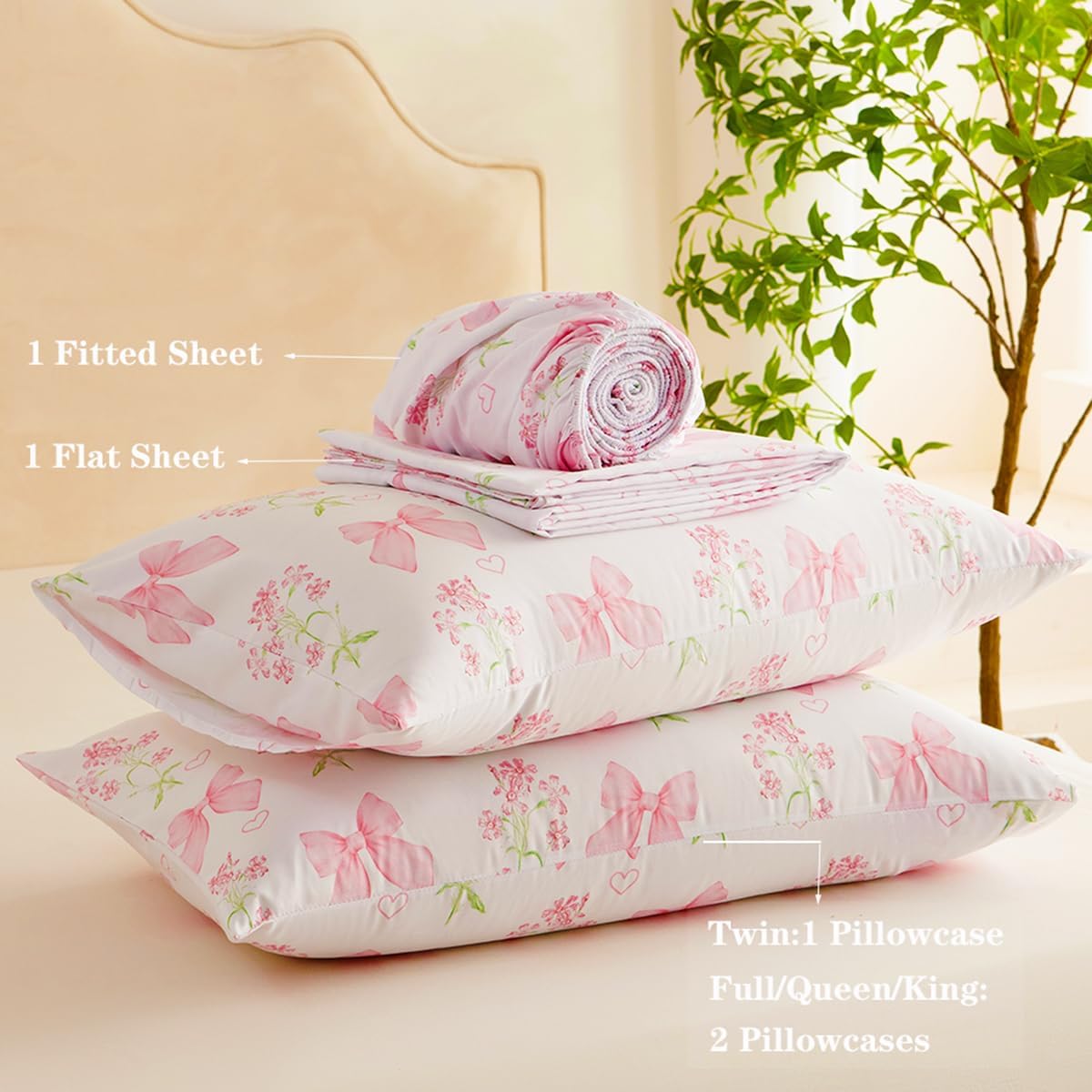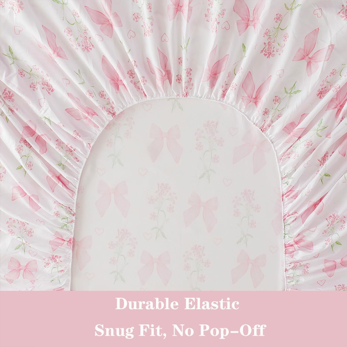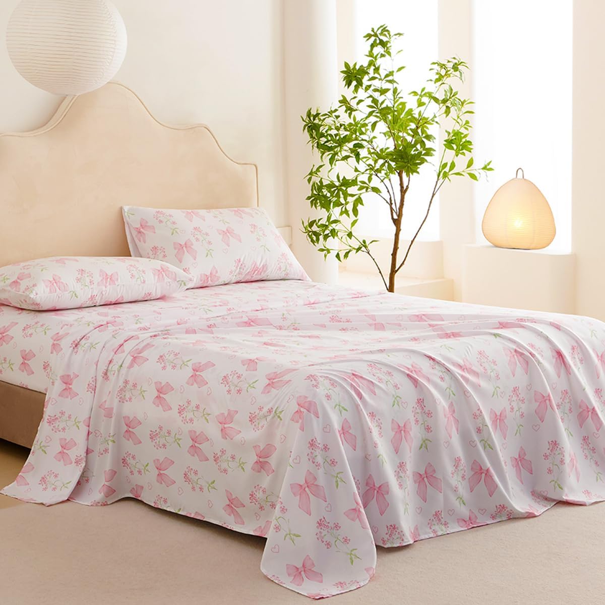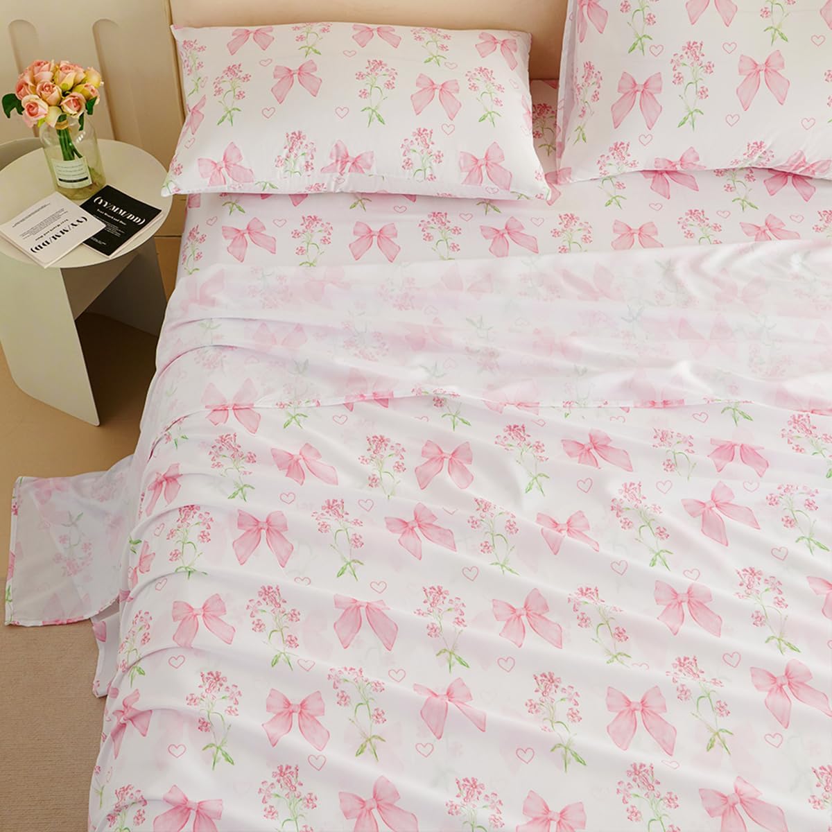 Introducing the perfect blend of style and comfort for little ones â Jolusere's Bowknot Sheet Set. With its charming bowknot and floral accents, this set adds a touch of magic to any child's room. Designed with a queen size bed in mind, it ensures a restful and inviting sleep environment for your child. Crafted from double brushed microfiber, the sheet set offers an ultra-soft feel that's gentle on sensitive skin. It's also breathable, easy to wash, and dries quickly, making it an ideal choice for busy parents who want hassle-free bedding care. The deep pocket fitted sheet is built to fit a wide range of mattress thicknesses, while the elastic borders ensure a secure fit that wonât slip or bunch. This 4-piece set includes everything you need for a complete, cozy look â from sheets to pillowcases, all with a delightful princess theme that kids love. Whether it's for a nursery or a toddlerâs room, Jolusere's Bowknot Sheet Set is a stylish, durable, and comfortable choice that supports your child's well-being. With 24-hour customer support, you can rest easy knowing you're always backed by a reliable team.Jolusere's Bowknot Sheet Set â Queen Size for a Cozy Kidsâ Bedroom