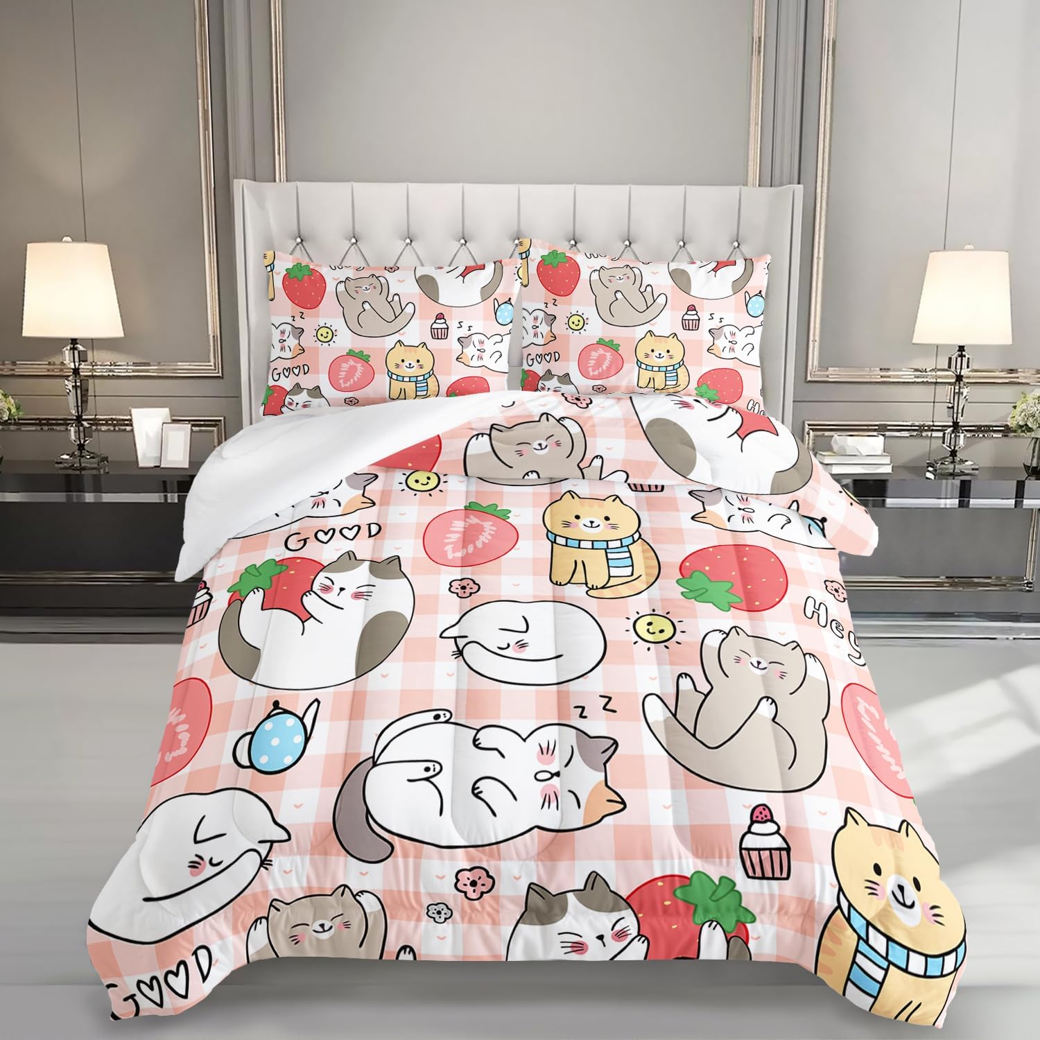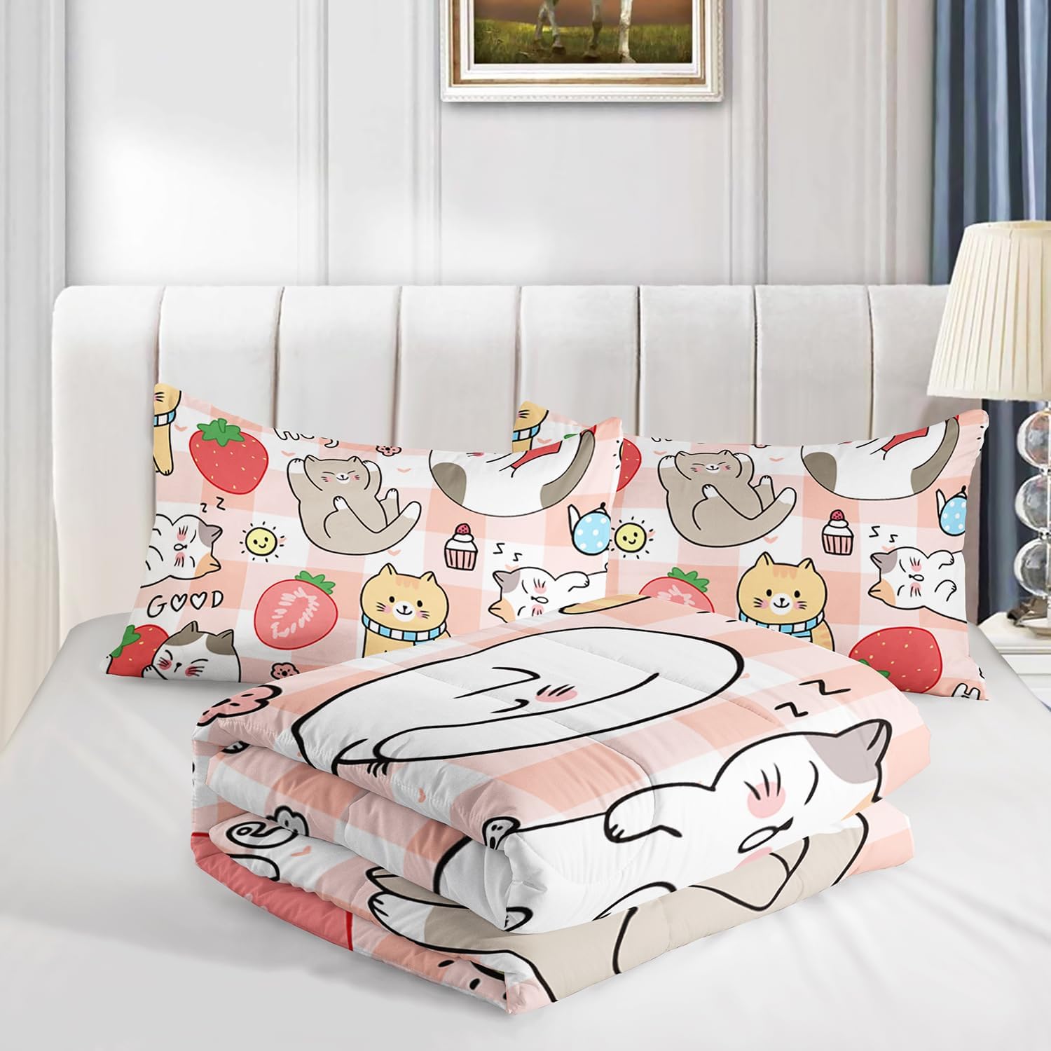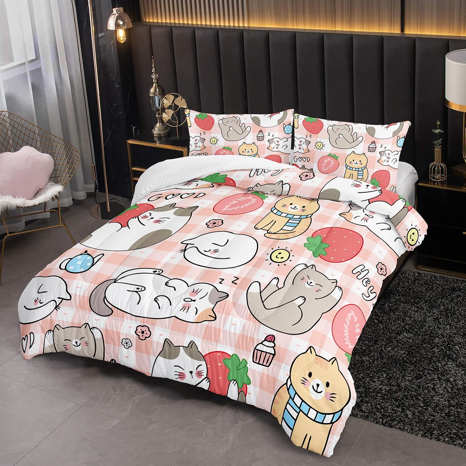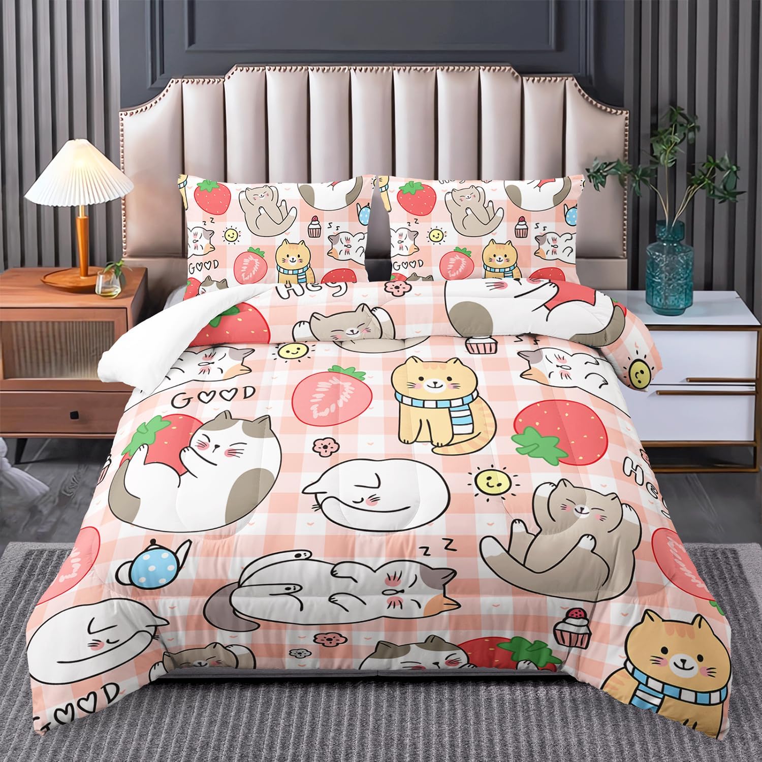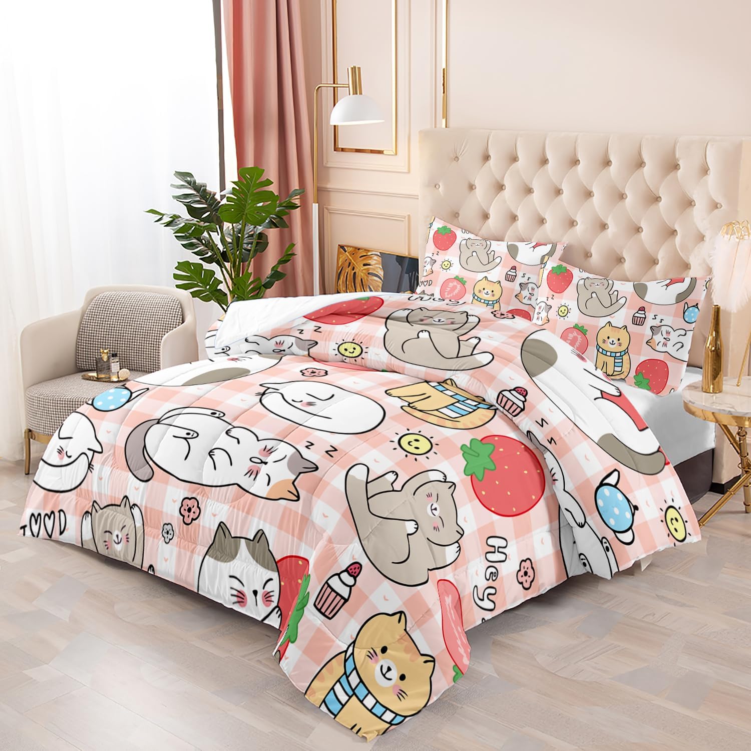 This 3-piece comforter set is the perfect way to add a whimsical and cozy touch to your little oneâs room. Featuring a playful cat print, it brings charm and style to any bedroom decor. The set includes a large quilt and two matching pillowcases, designed to create a dreamy sleep environment.