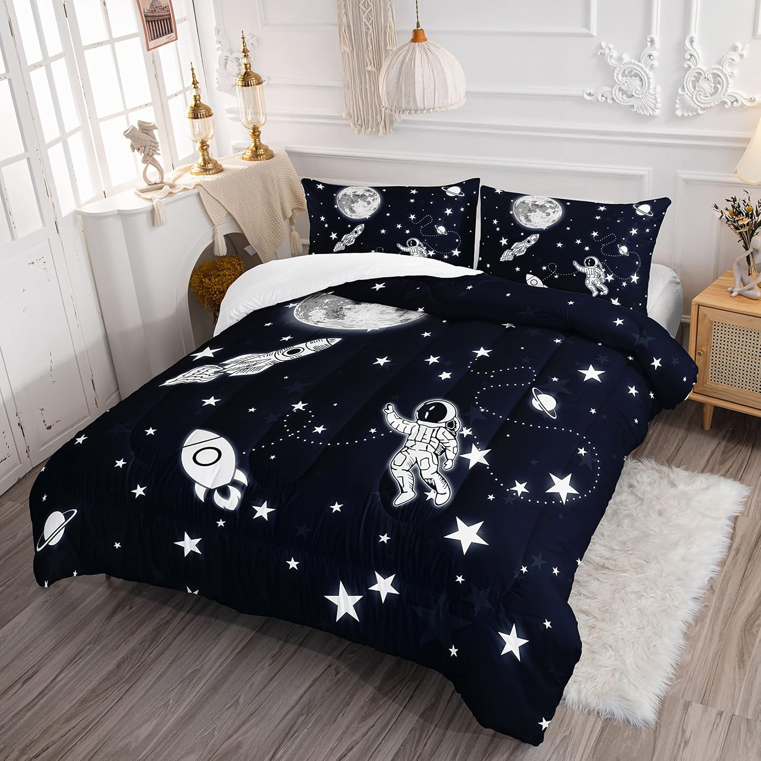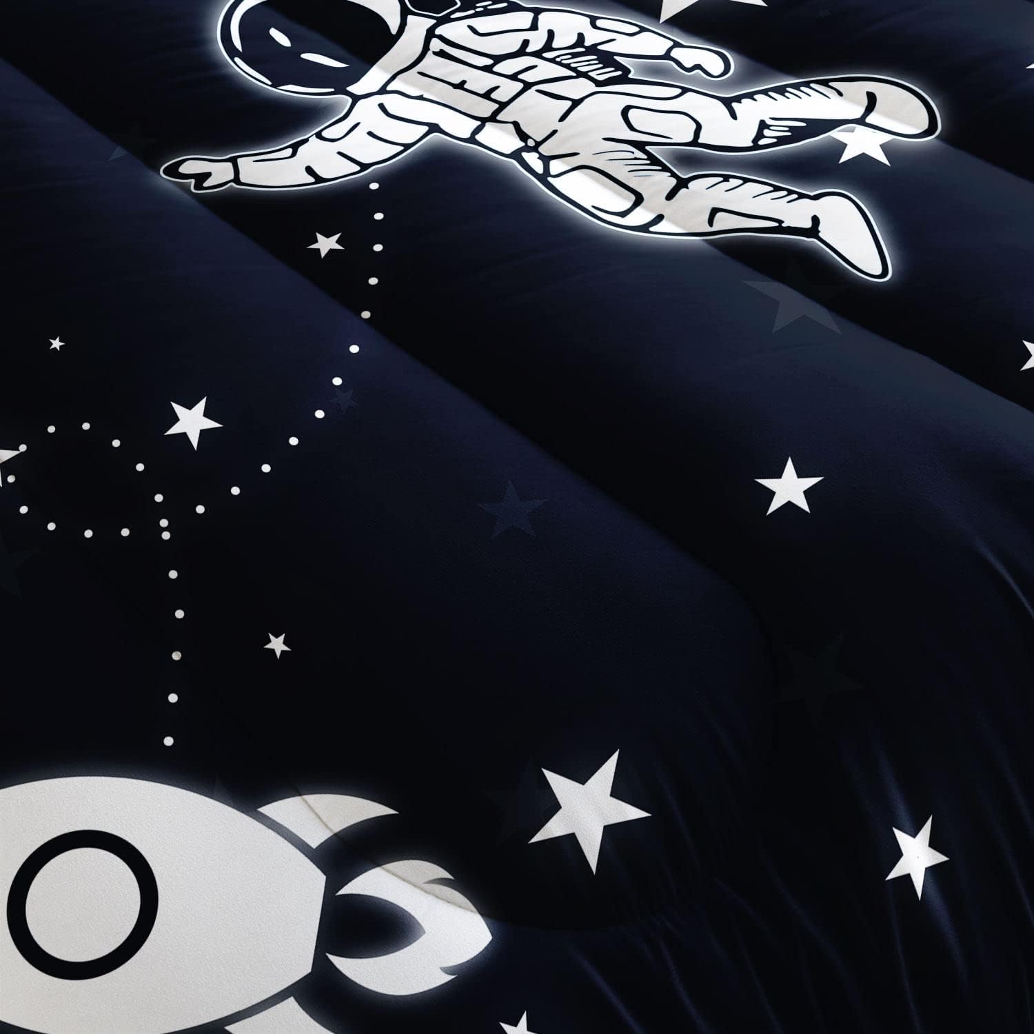 This Kids Comforter Set is designed to add a magical touch to your child's bedroom, combining comfort with a fun space theme. Perfect for young astronauts and space enthusiasts, it creates an imaginative and cozy environment that makes bedtime more exciting.