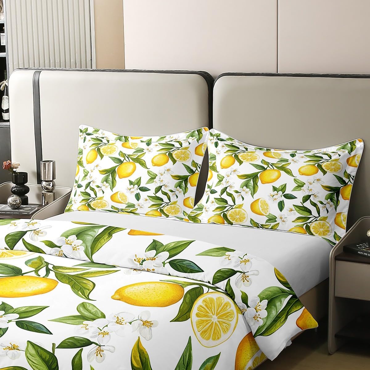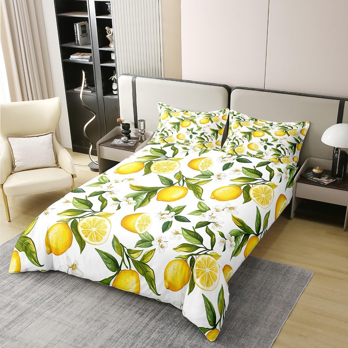 Transform your bedroom with this stylish and cozy Lemon Pattern Duvet Cover Set, made from soft 100% cotton that ensures a comfortable and breathable sleep environment. The cheerful lemon floral design adds a touch of natural beauty, making it ideal for both kids and adults looking to bring some vibrant energy to their space. Whether you're seeking a fresh summer vibe or a whimsical interior design, this set delivers the perfect balance of aesthetic appeal and quality craftsmanship. Designed for durability and ease of care, itâs a great addition for everyday use and simple maintenance with machine wash and tumble dry.