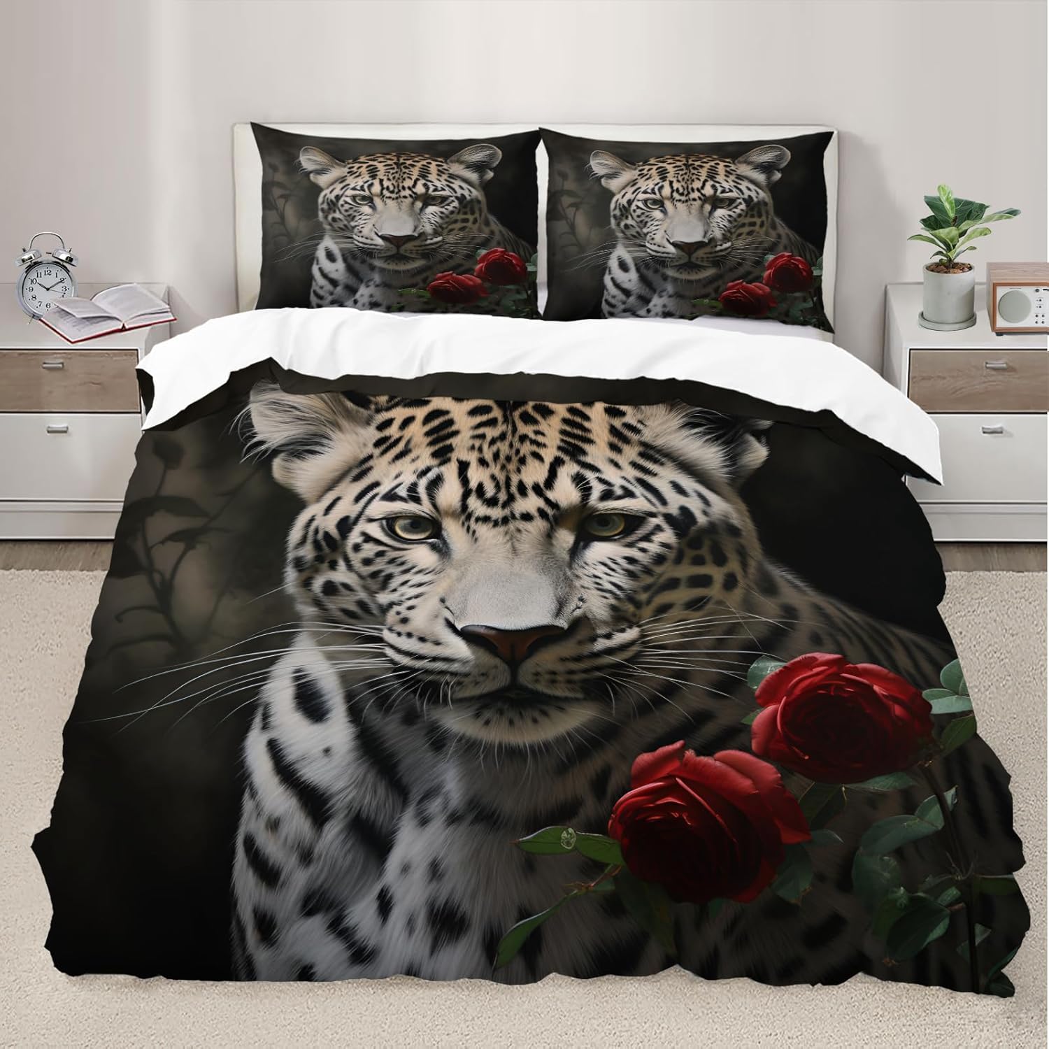 Elevate your bedroom with the Leopard Rose Duvet Cover Set, designed for both style and comfort. Made with premium 120 GSM microfiber fabric, it offers a silky-smooth texture that feels like a gentle embrace each night. This set is perfect for adding a touch of wild elegance to your space, whether you're looking to refresh a kids' room or upgrade an adult bedroom. This Leopard Rose Duvet Cover Set is more than just beddingâit's a statement. Its beautiful floral cheetah pattern adds a unique artistic flair that complements both modern and eclectic home styles. The set includes a duvet cover and two matching pillow shams, making it easy to transform your space into something stylish and inviting. Whether you're looking for a gift or a personal upgrade, this set offers unmatched comfort and ease of care.Leopard Duvet Cover Set