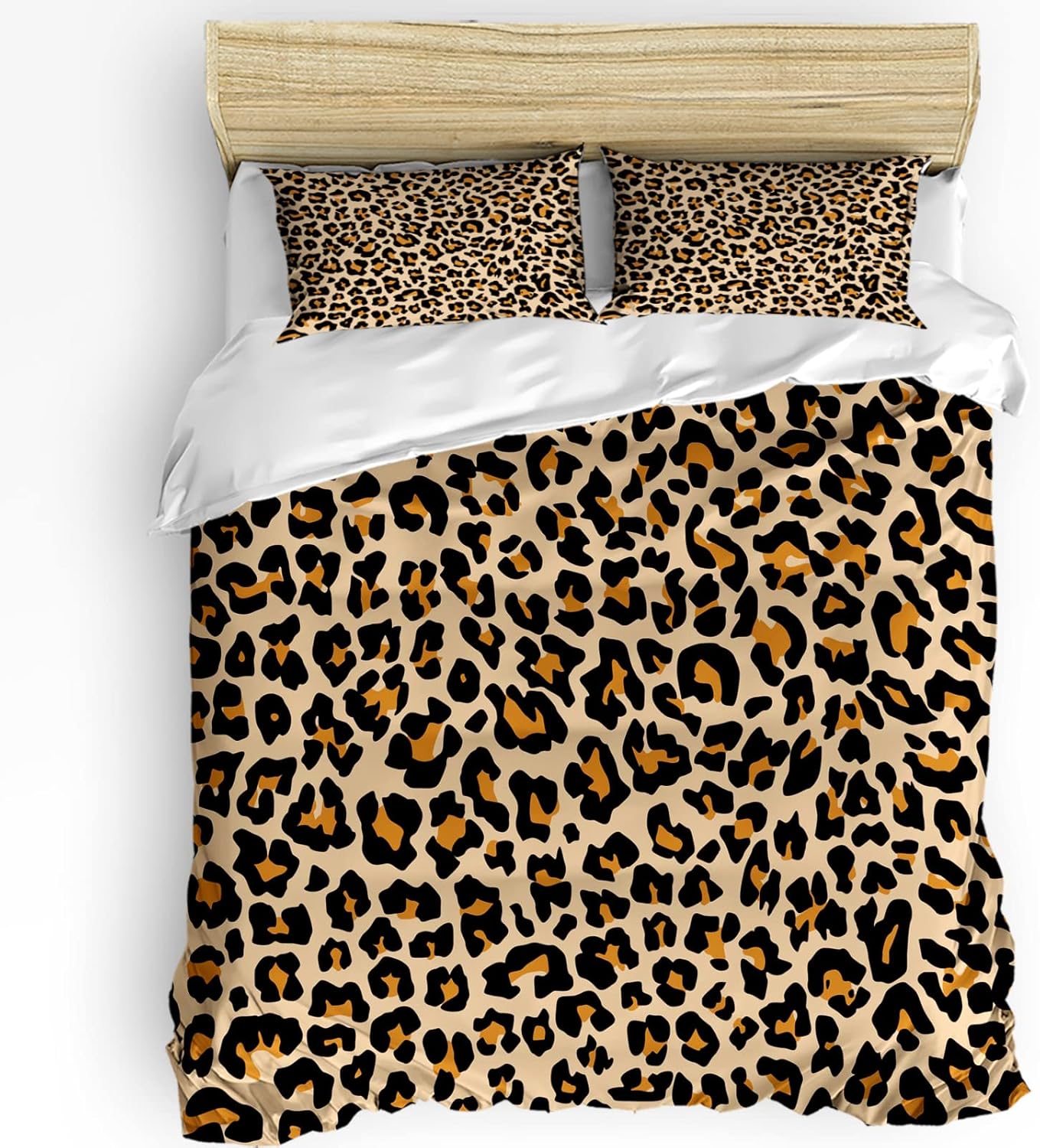 Elevate your bedroom with this eye-catching leopard print comforter set, crafted from premium microfiber polyester. Its soft, smooth texture ensures all-season comfort, while the wrinkle-free fabric keeps your bedding looking fresh and stylish after every wash. This complete set includes 1 duvet cover and 2 pillow shams, making it perfect for a California King bed and ready to transform your space with wild elegance.