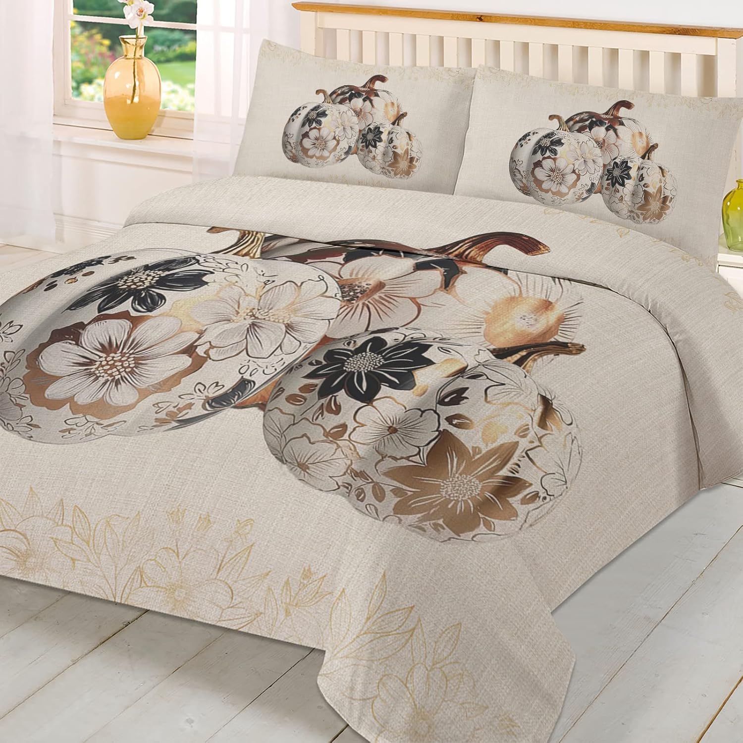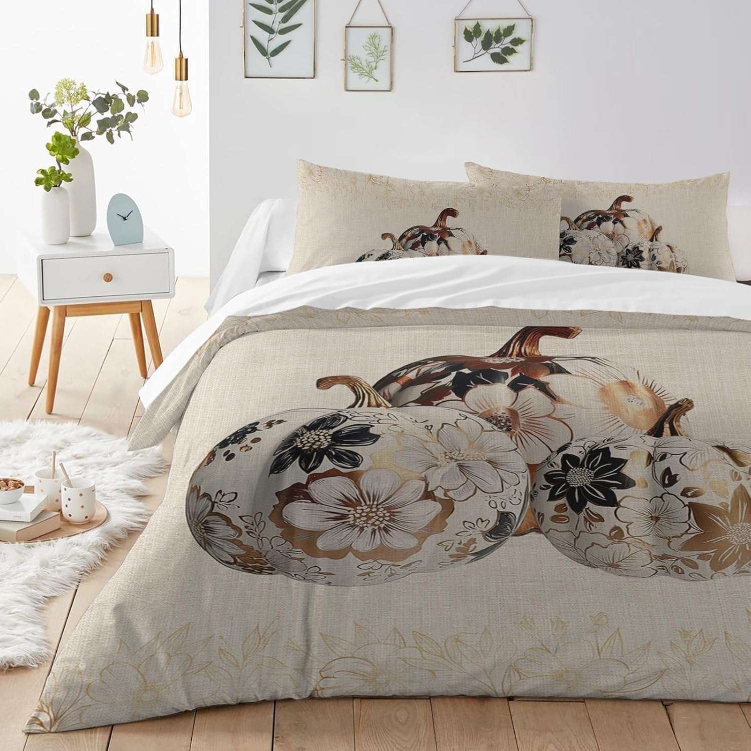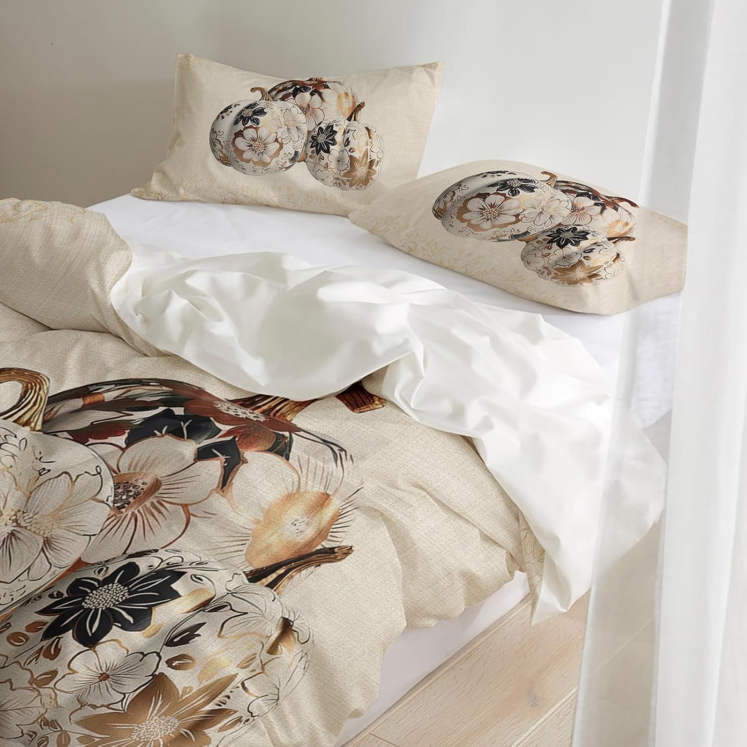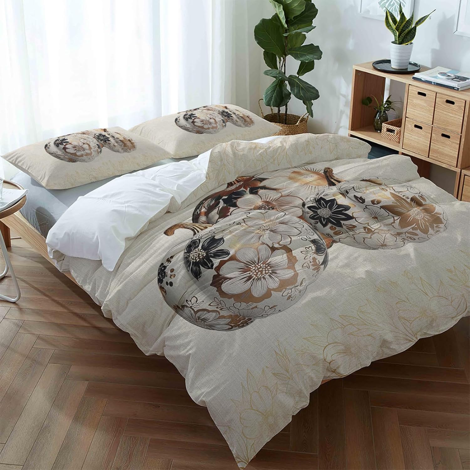 Bring the cozy comfort of autumn into your bedroom with this stunning LooPoP duvet cover set. Designed with a vibrant flower pumpkin pattern, it adds a warm, inviting touch to your space perfect for fall or seasonal decor.