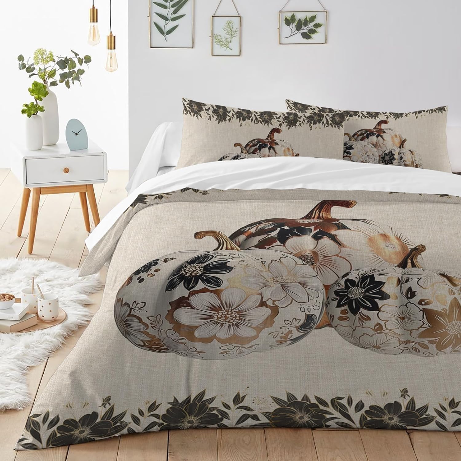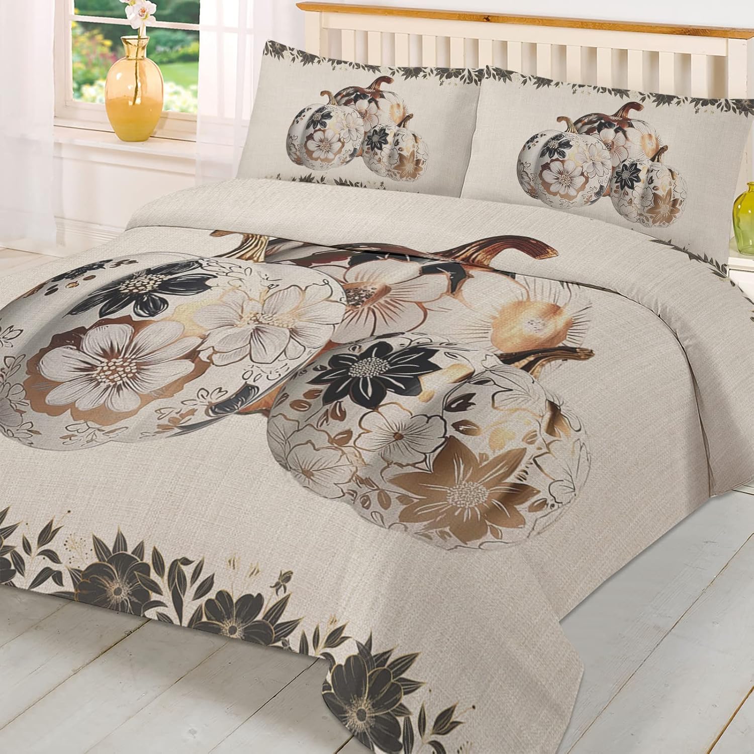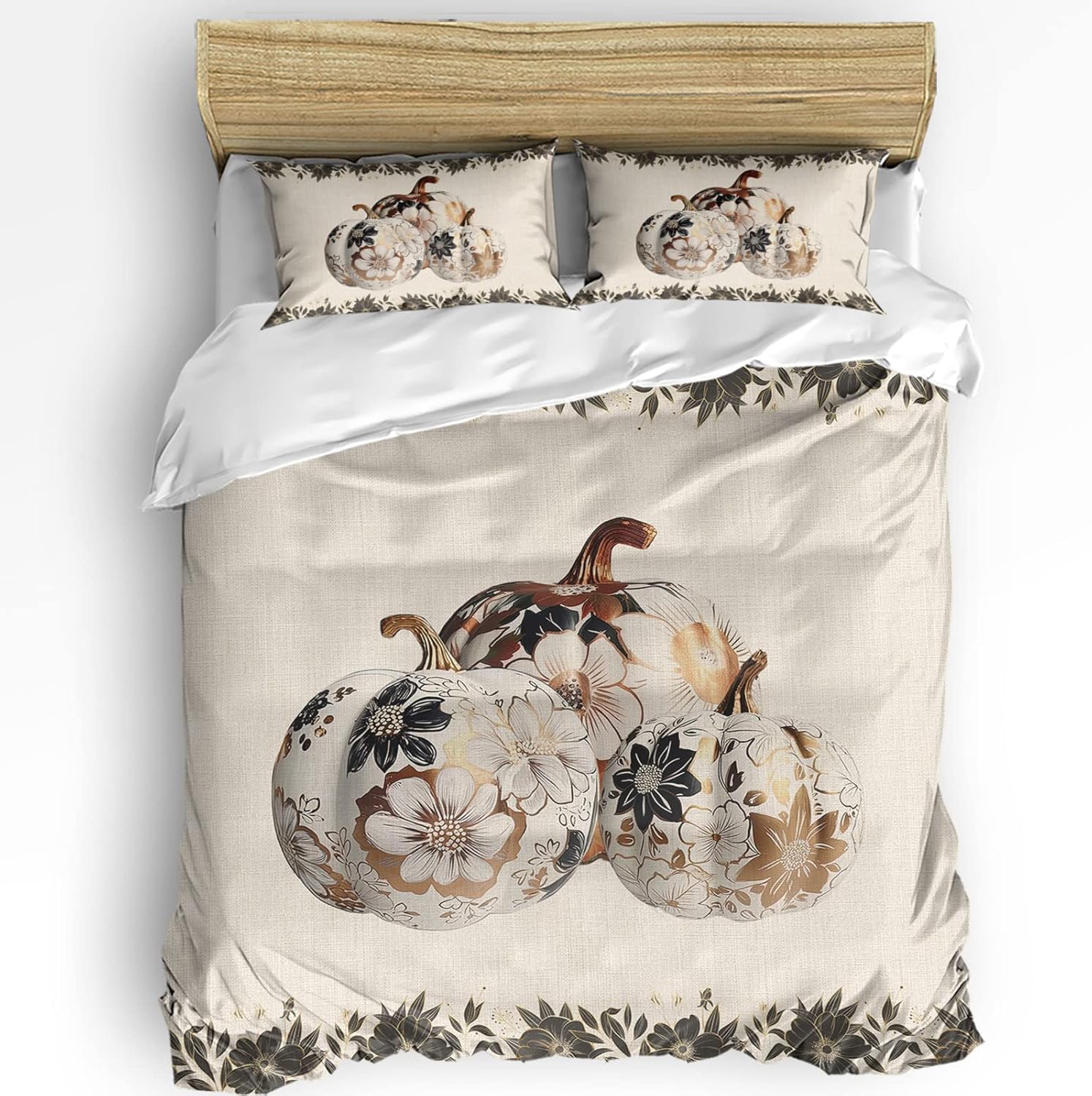This duvet cover set is the perfect way to transform your bedroom with a touch of elegance and cozy warmth. Meticulously crafted from premium microfiber polyester, it feels soft against the skin and offers a breathable, comfortable sleep environment. Whether you're looking for a stylish addition to your daily bedding routine or a festive centerpiece for the holidays, this set delivers both form and function. The black floral pattern ties in beautifully with holiday themes like Thanksgiving, making it a versatile option for seasonal decor. With its sleek design and high-quality fabric, it's an ideal choice for your master bedroom or guest room, adding a touch of sophistication to your sleep space. It's designed to be used all year round, whether as a standalone cover or paired with a comforter for extra warmth during colder months. Equipped with a hidden zipper closure, this set allows for easy removal, making it simple to clean or adjust as needed. The four corner ties ensure your insert stays secure and in place, offering a snug fit without compromising comfort. This is the kind of bedding solution that simplifies your routine while keeping your sleep experience exceptional. Pair it with a quilt or blanket for added coziness during the fall season, or use it as a base for your comforter in the winter for a warm and inviting sleep environment. The LooPoP California King duvet cover set is not just for sleeping â it's a functional and decorative piece that enhances your bedroom for any occasion. Whether you're shopping for yourself or gifting a loved one, this set is sure to impress. Great for fall, winter, or as a holiday gift for Thanksgiving, this set is the ultimate blend of style and comfort you've been searching for.Experience Unmatched Comfort and Style with the LooPoP Duvet Cover Set