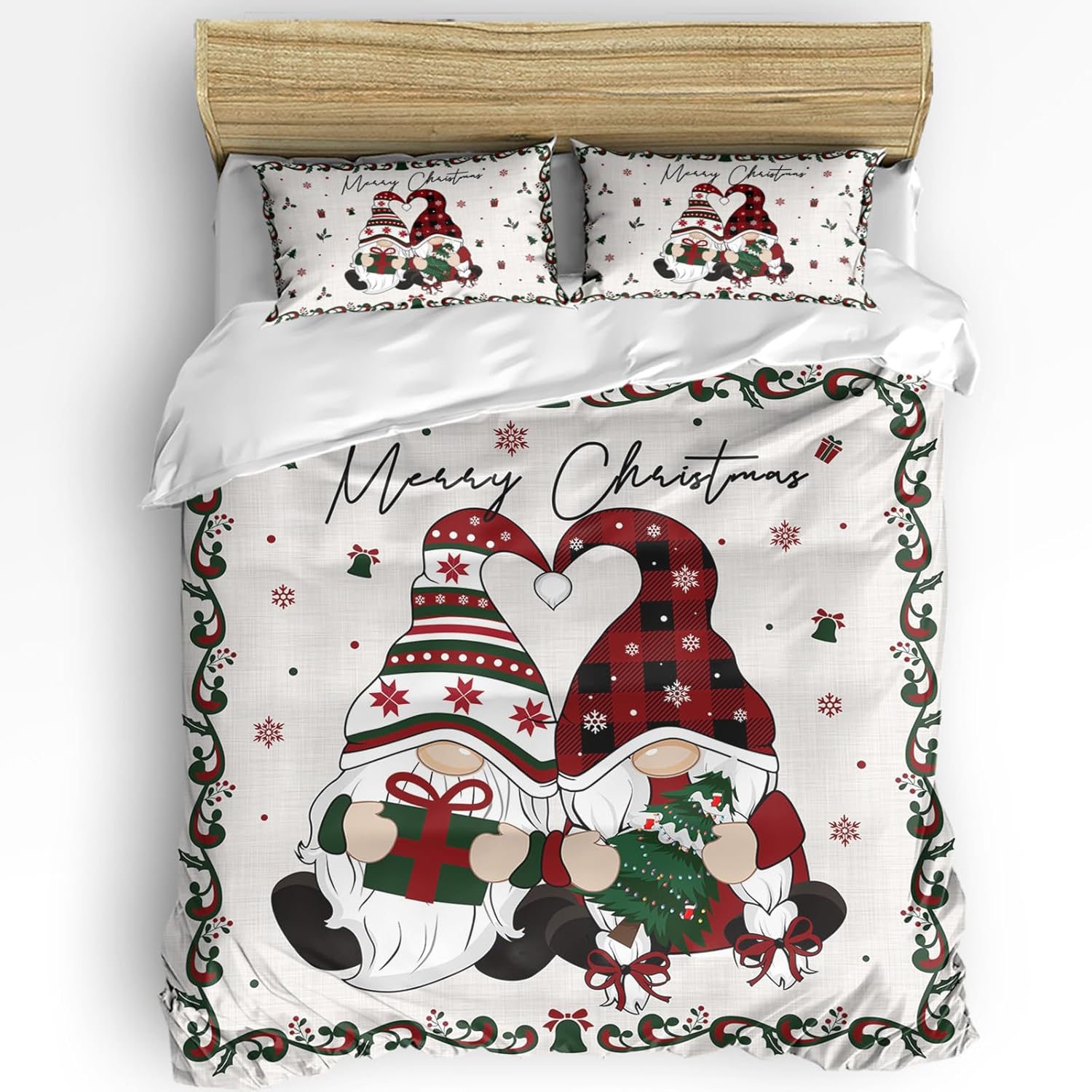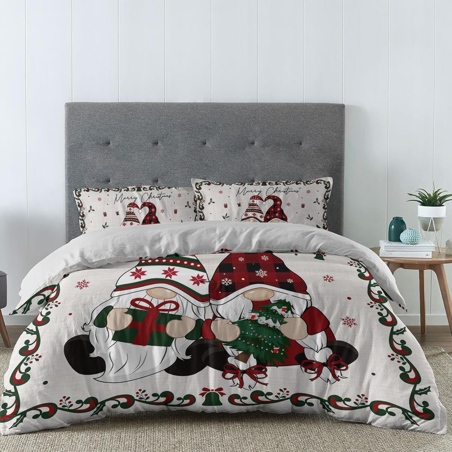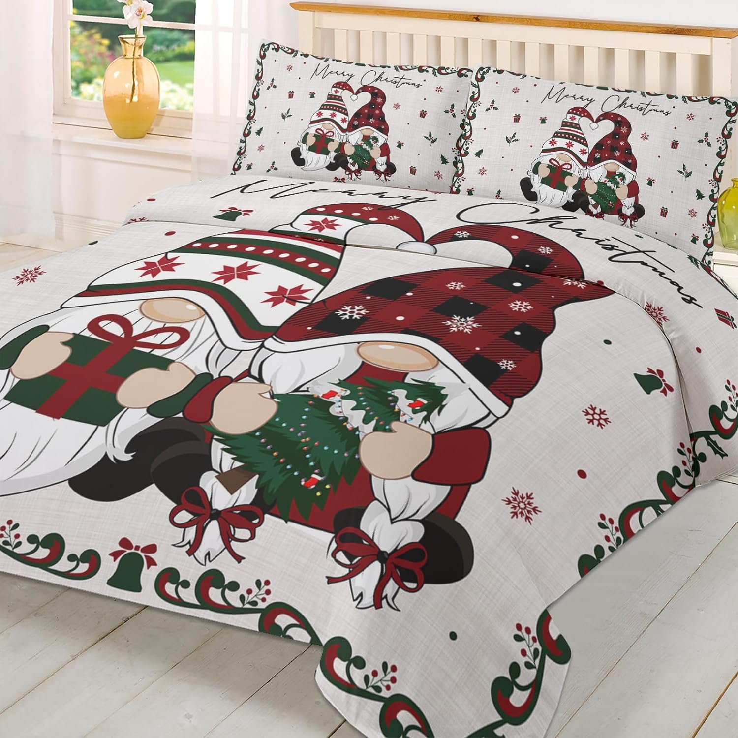 The xmas tree gnome design adds a charming, festive touch to your décor. Whether you're adding a layer of warmth with a blanket or using it as a standalone quilt, this set provides versatility for any holiday or winter setting. Hidden zipper and corner ties ensure a secure fit and make it easy to remove for cleaning.