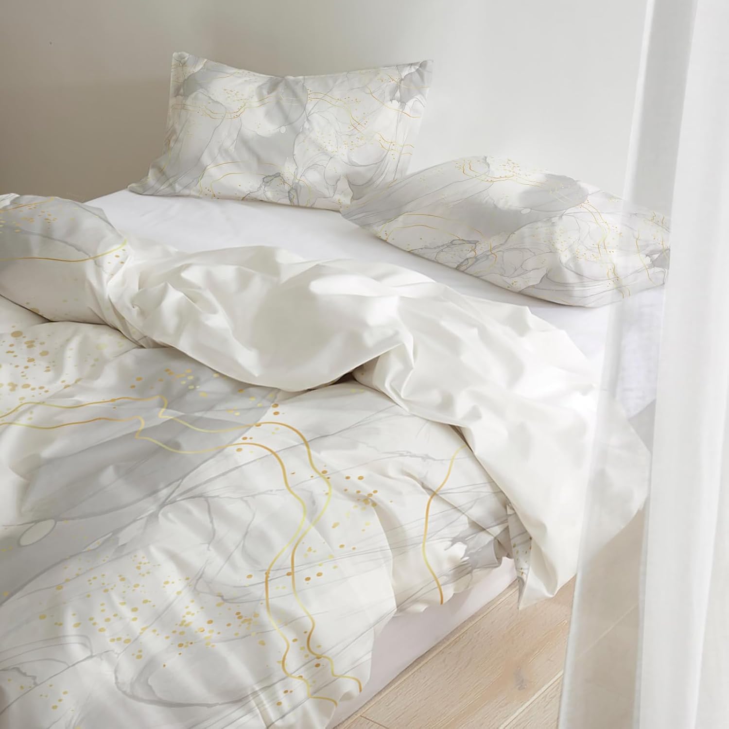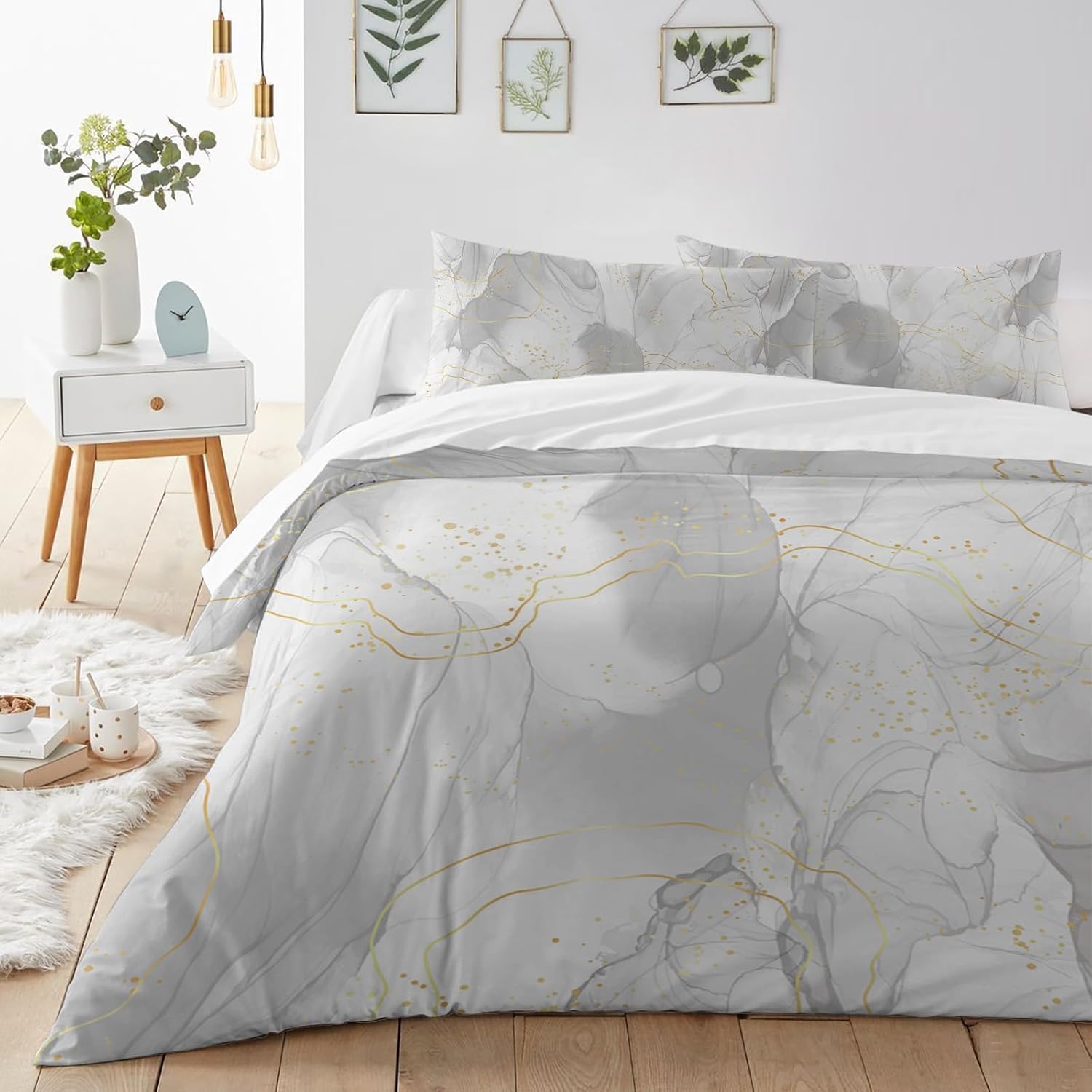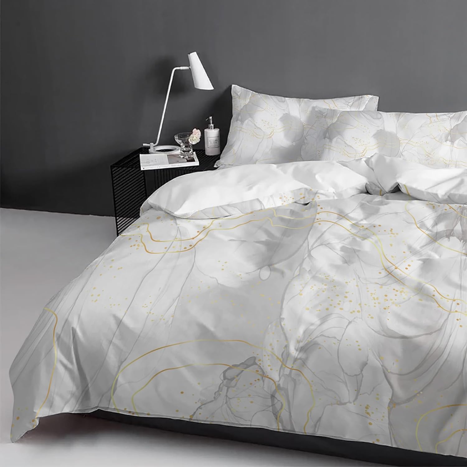 This elegant duvet cover set is designed to bring a contemporary and sophisticated vibe to your bedroom. It includes a California King duvet cover adorned with a striking grey marble pattern, paired with two matching pillow cases that complete the look. Crafted from premium microfiber polyester, the set is soft, durable, and breathable, ensuring you enjoy a comfortable and restful night's sleep.