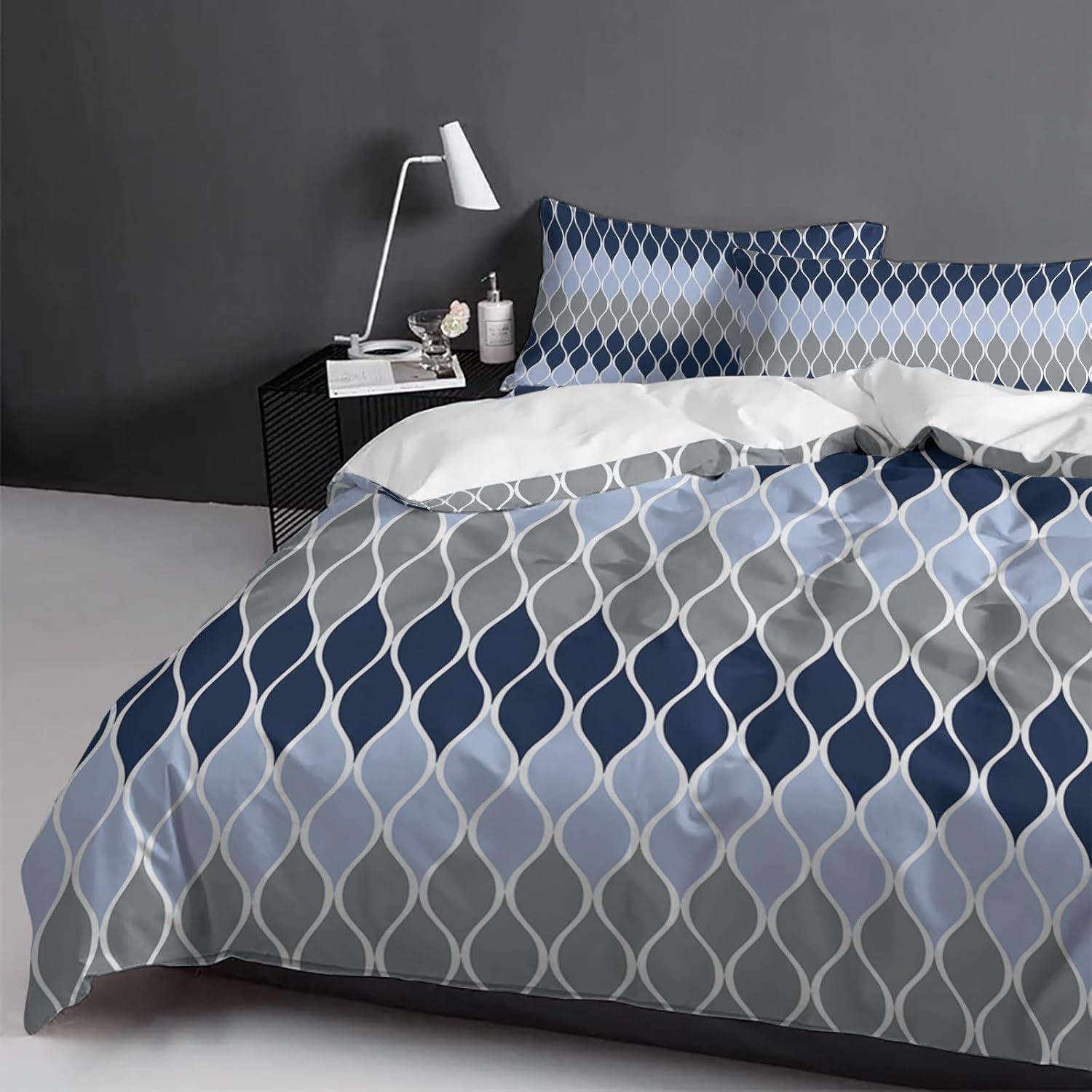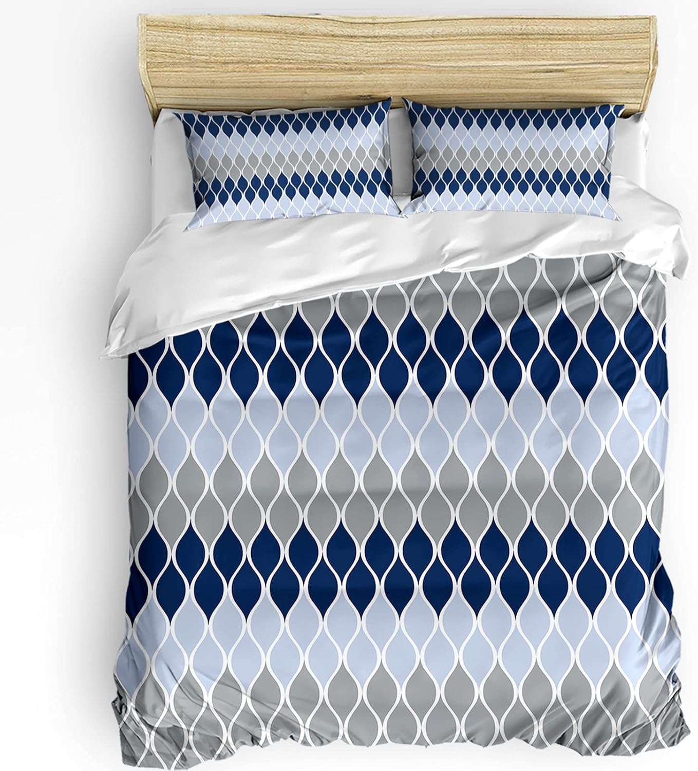 Elevate your bedroom with this California King duvet cover set that blends mid-century modern design with comfort. The bold geometric ombre blue grey pattern adds a unique and artistic touch, making it a standout choice for modern home decor enthusiasts. This set includes everything you need for a complete, stylish lookâ1 duvet cover and 2 matching pillow cases.