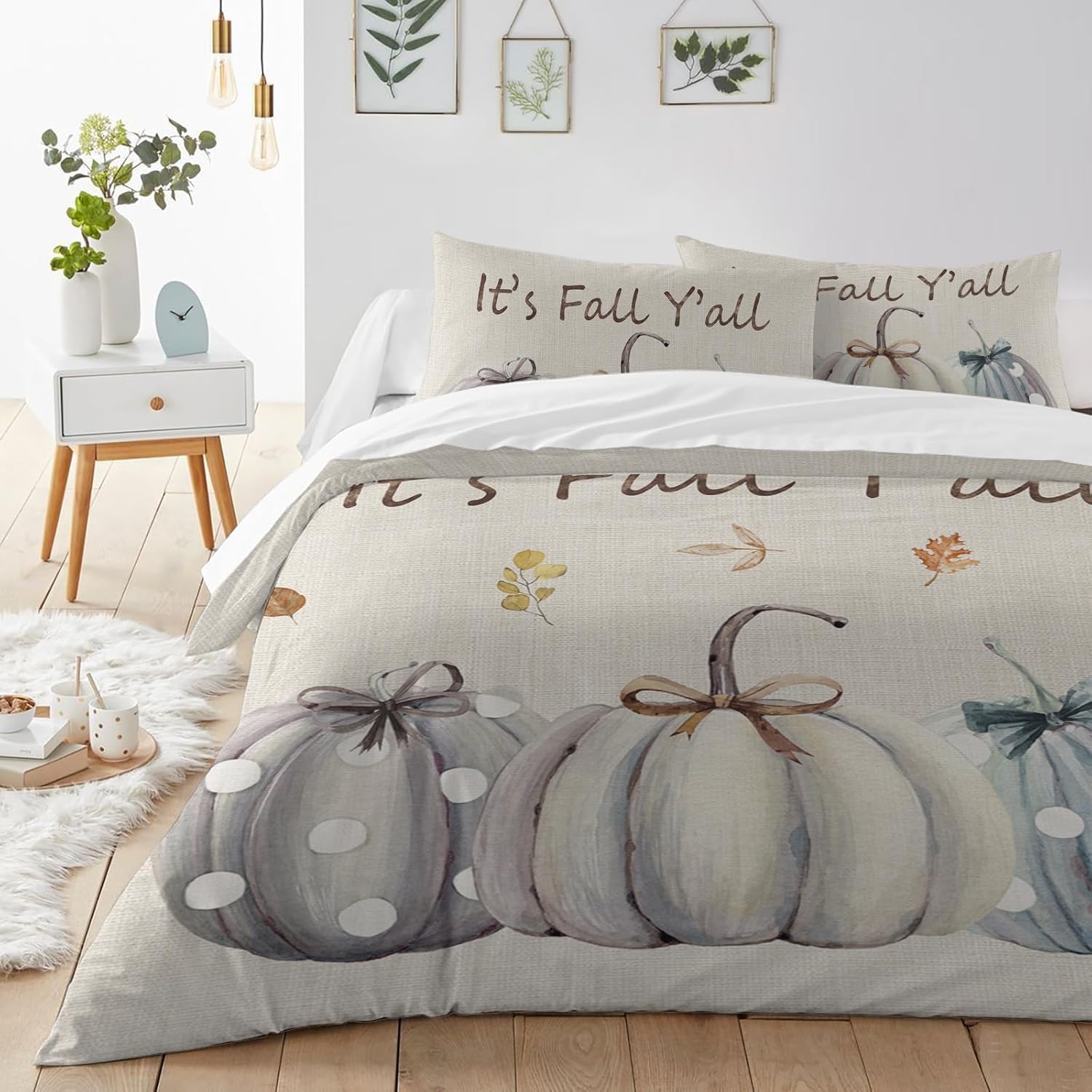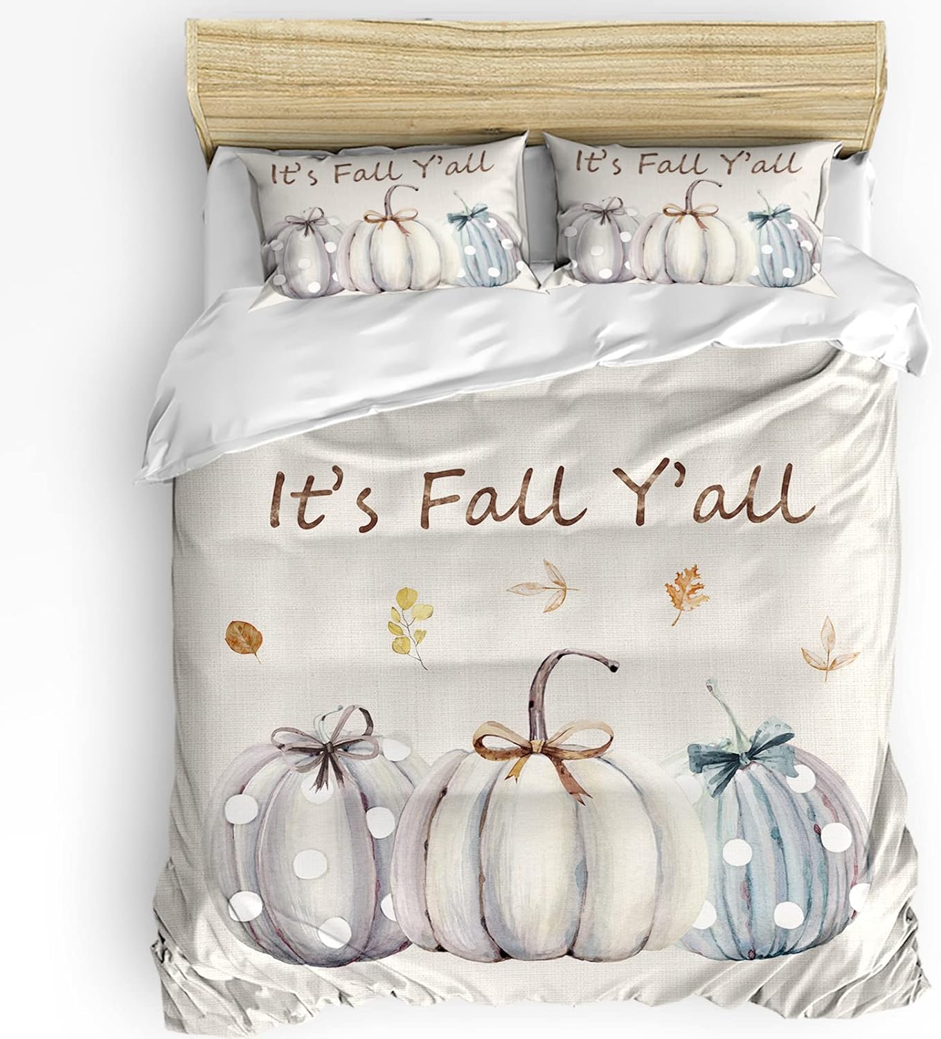 LooPoP Fall Duvet Cover Set includes a California King-sized cover and 2 matching pillow cases. Made from premium microfiber, it's soft, durable, and easy to care for. The hidden zipper closure and corner ties ensure a secure fit and comfortable sleep. Ideal for fall decor and seasonal home styling.
