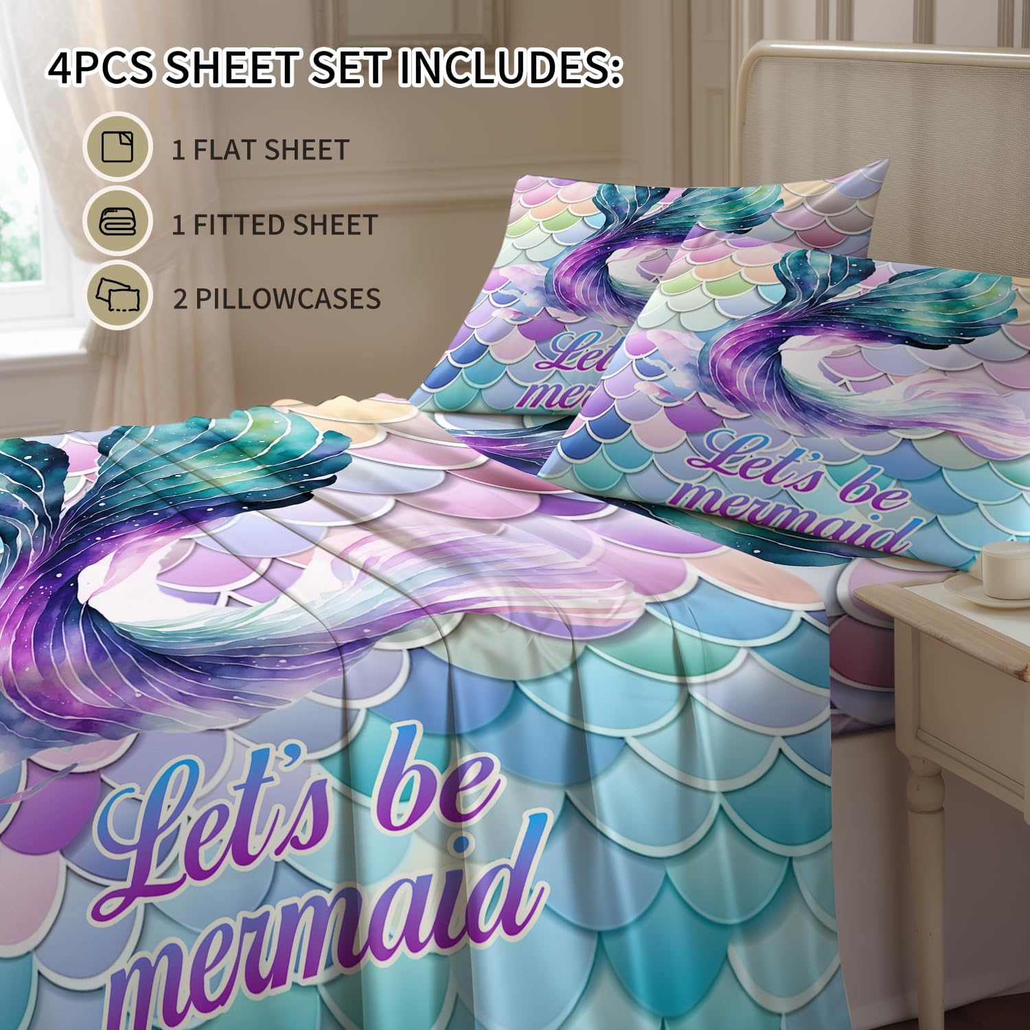 Featuring a 4-piece set, it includes 1 flat sheet, 1 fitted sheet, and 2 pillowcases made from ultra-soft microfiber. The fabric is gentle on skin and hair, promoting a restful sleep and easy maintenance with just a simple machine wash.