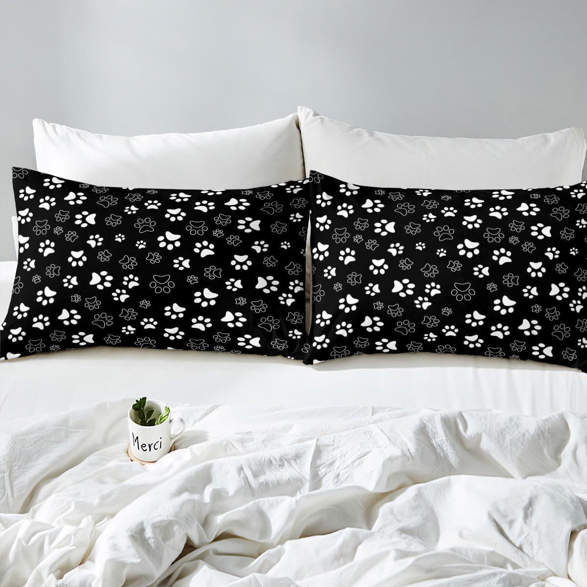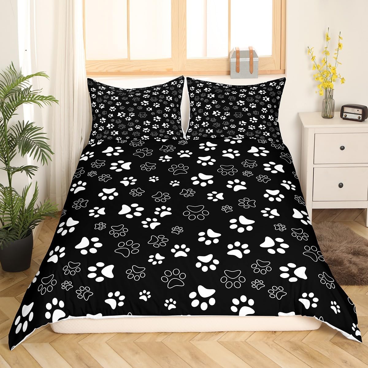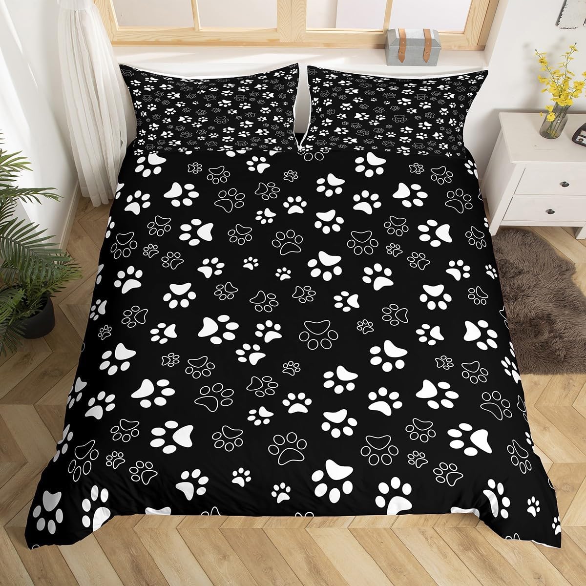 Bring a touch of fun and warmth to your bedroom with this charming dog paw print duvet cover set. The bold black and white design adds a whimsical flair to any space, making it ideal for parents who love playful and creative decor for their kidsâ rooms. Designed with charm and comfort in mind, the set blends style with practicality, while the soft microfiber fabric feels gentle against the skin and maintains its vibrant color for years.