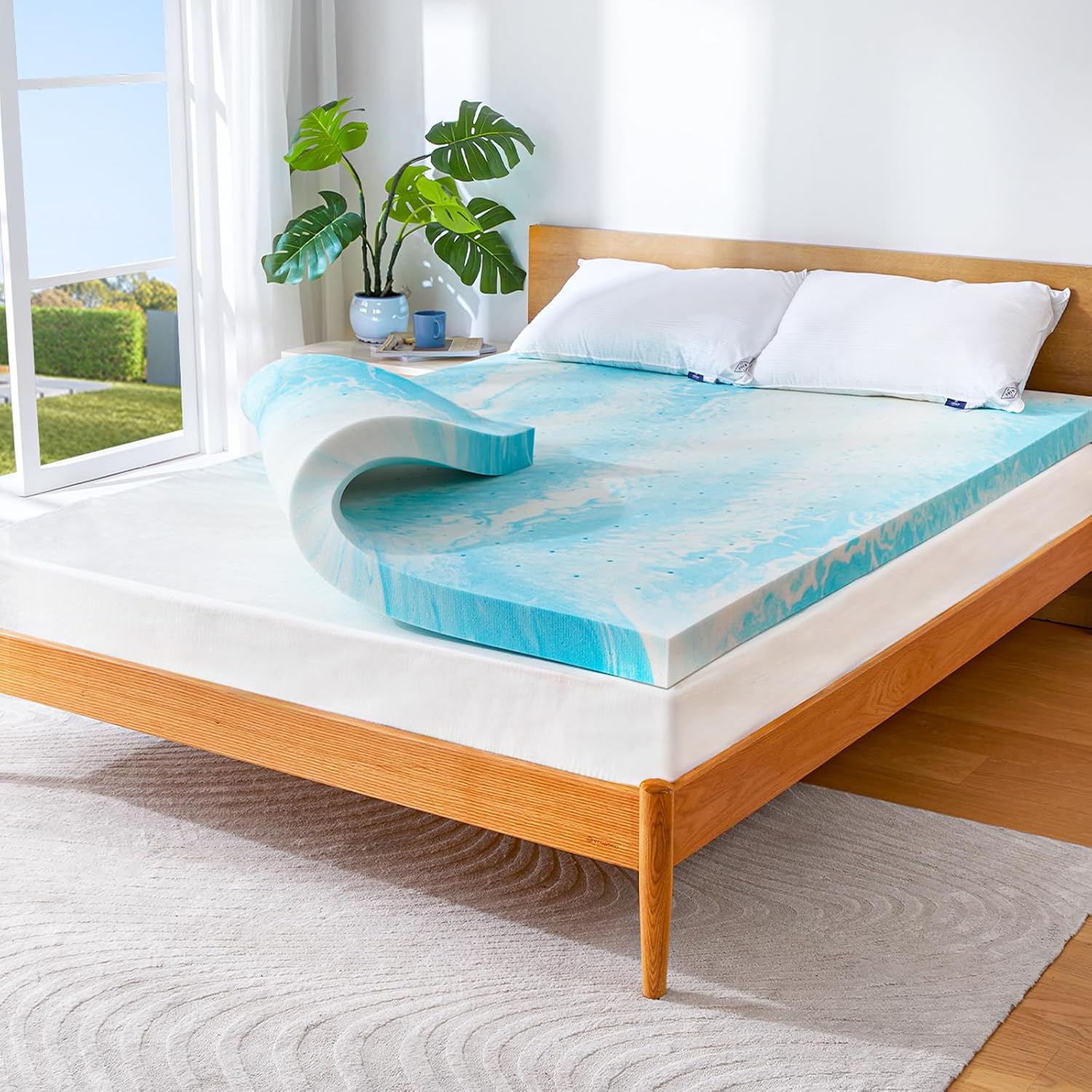 Transform your sleep experience with this high-performance queen size mattress topper. Infused with cooling gel beads, it keeps you comfortable and cool throughout the night, helping you drift off into a deeper, more restful sleep. The gel-infused mattress topper is crafted with high-density memory foam for superior support and pressure point relief, ensuring your spine stays properly aligned no matter your preferred sleep position.