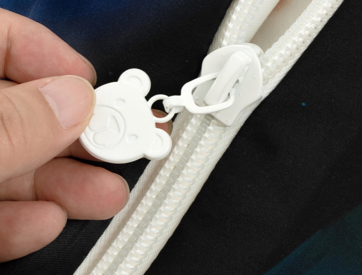 The double-ended zipper allows for quick removal and reattachment of the comforter and bed cap. This makes cleaning and refreshing the set easy, without the hassle of taking apart the entire bedding arrangement.
