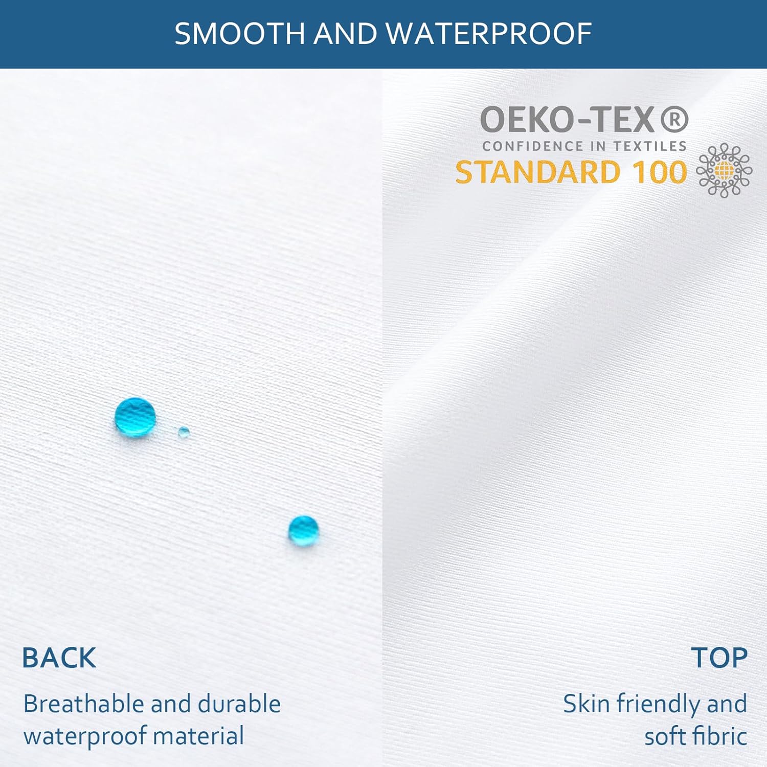 Designed to provide unmatched protection for your mattress, this Moonsea waterproof mattress protector combines comfort, durability, and style in one. Crafted from soft, breathable polyester fabric, it ensures a cool and restful sleep without sacrificing convenience. The 100% waterproof TPU backing acts as a powerful shield against spills, moisture, and even bedwetting, making it an essential companion for families with children or pets. With a 360° elastic band, it stays securely in place, offering full coverage and eliminating the need for constant adjustments. Plus, its noiseless design ensures a quiet and peaceful nightâs sleep, helping you relax and recharge.